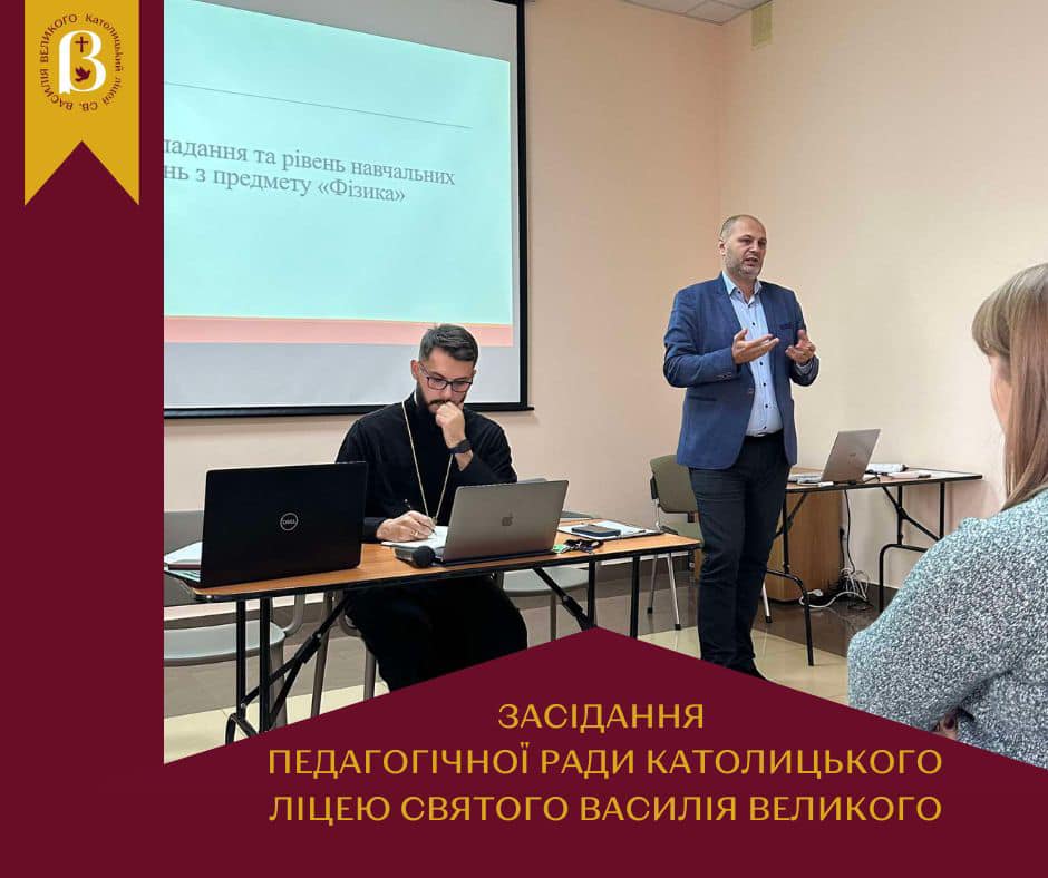 23 жовтня у Католицькому ліцеї святого Василія Великого відбулось чергове засідання Педагогічної ради. Цього дня вчителі зібралась для розв’язання робочих питань та аналізу роботи у першому триместрі.