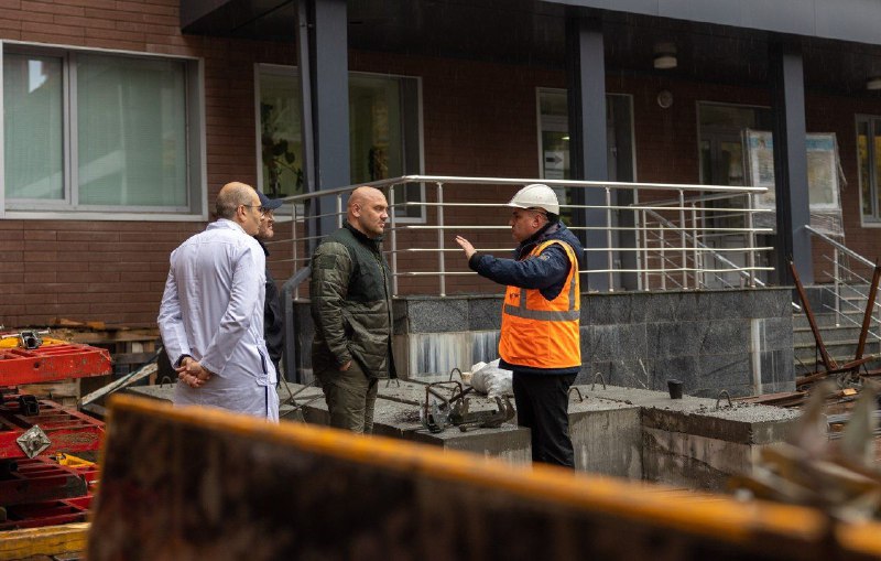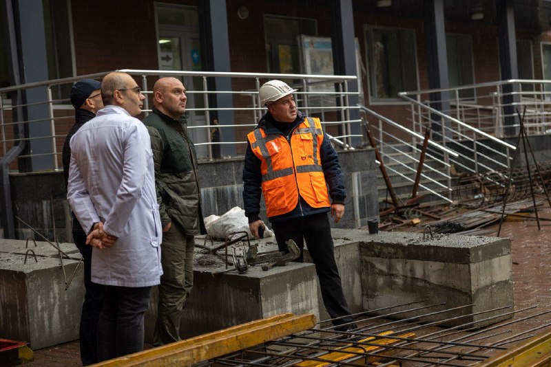 Ознайомився з роботою лікарні. Оглянув хід будівництва нового хірургічного корпусу. Підрядники вже зводять залізобетонний каркас.