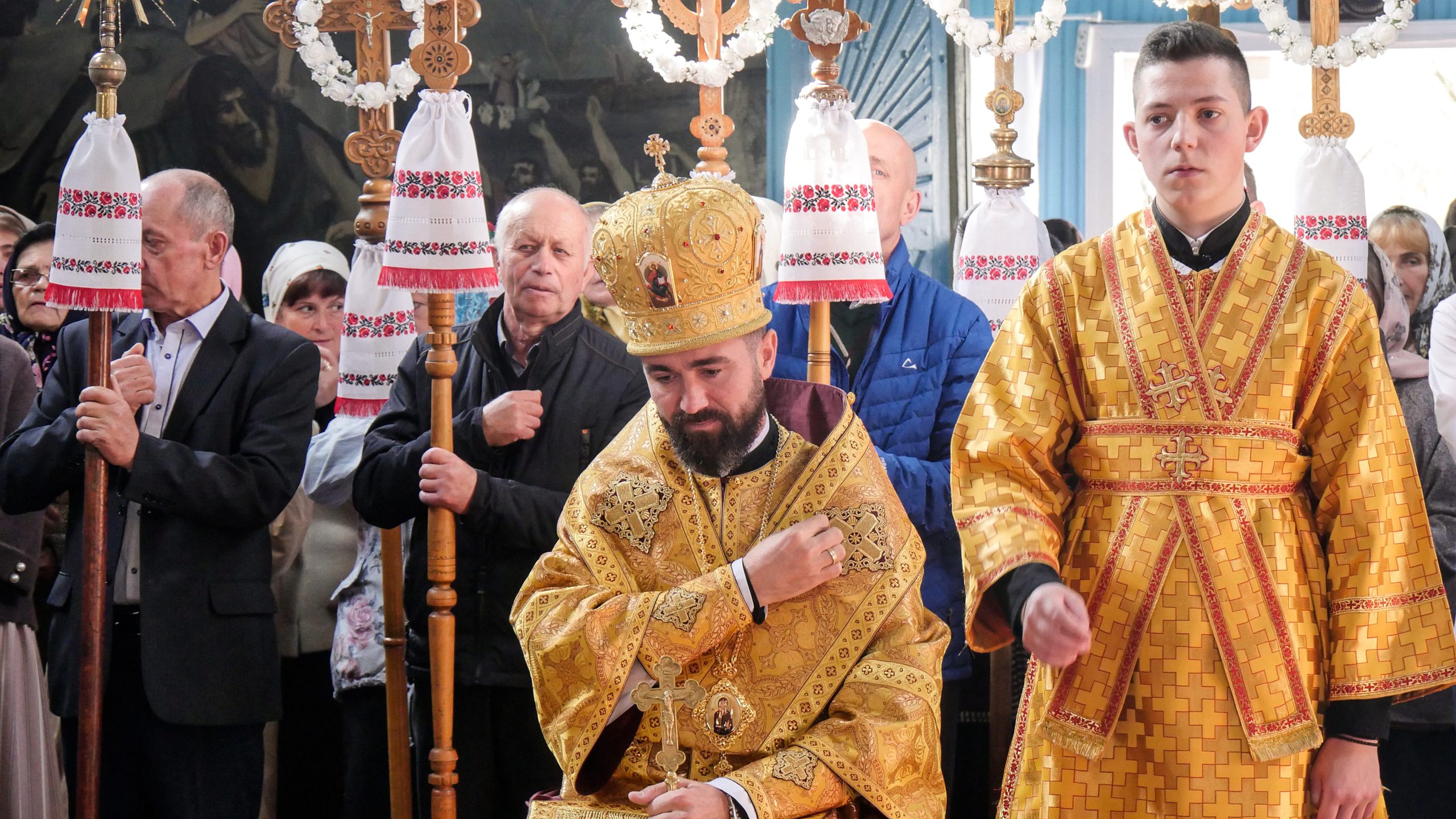 Відтак у храмі відбулася Архієрейська Божественна Літургія, яку очолив Владика Микола у співслужінні пароха храму святого Дмитрія о. Василя Савчина та духовенства Богородчанського протопресвітеріату.