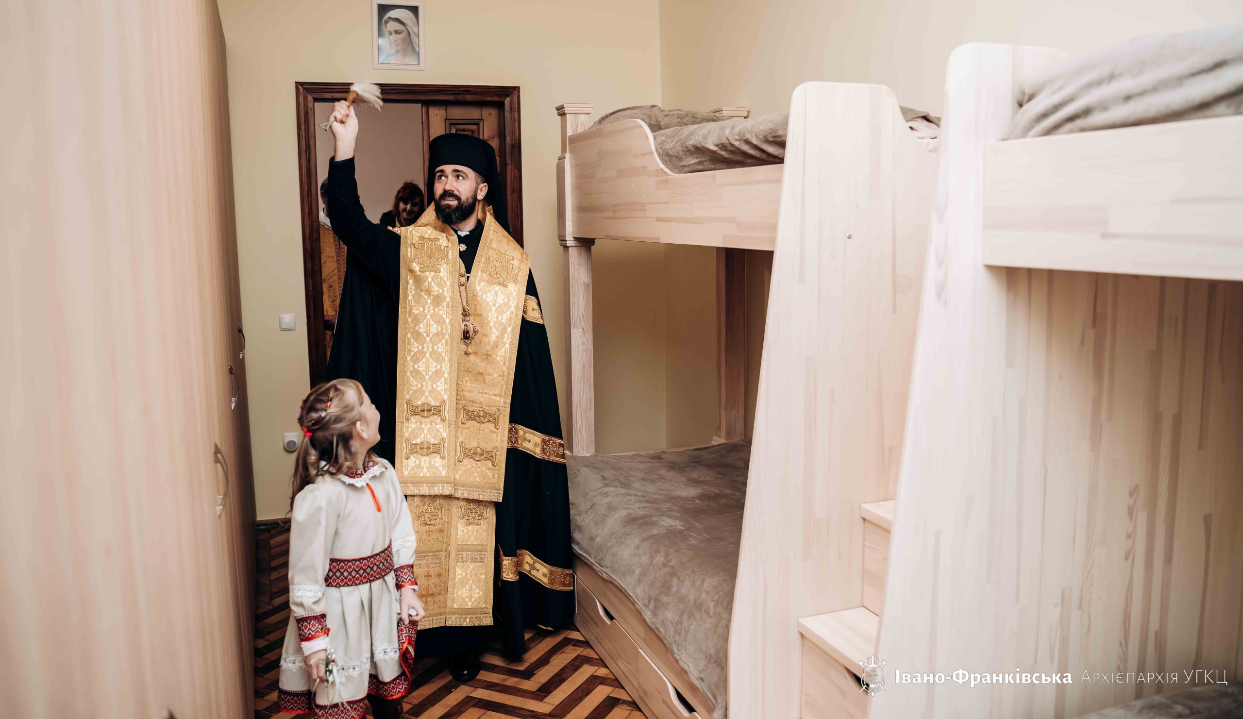 Згодом Владики здійснили Чин освячення приміщення, у якому діятиме містечко милосердя, а також поблагословили всіх присутніх освяченою водою, зокрема перших юних мешканців установи.