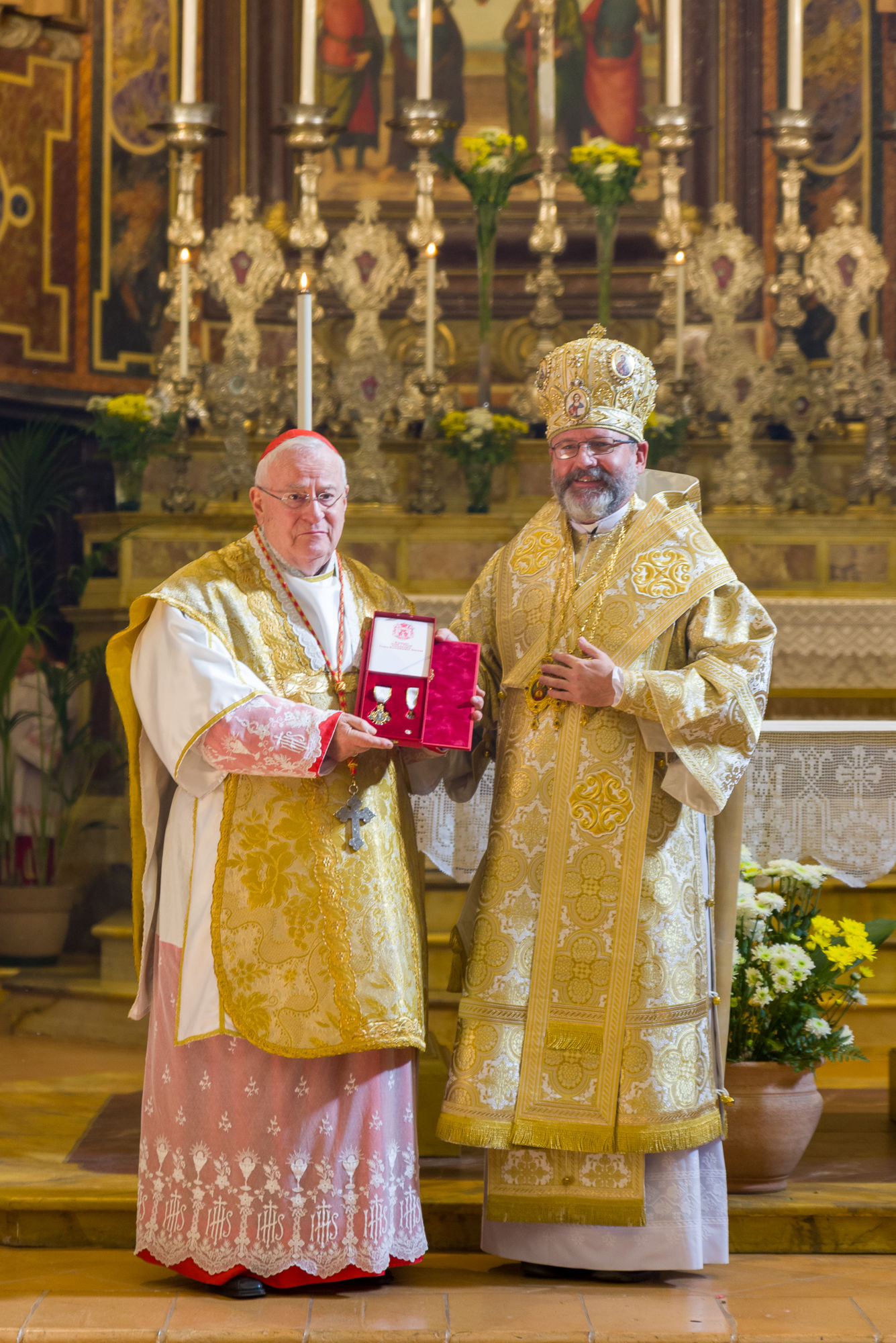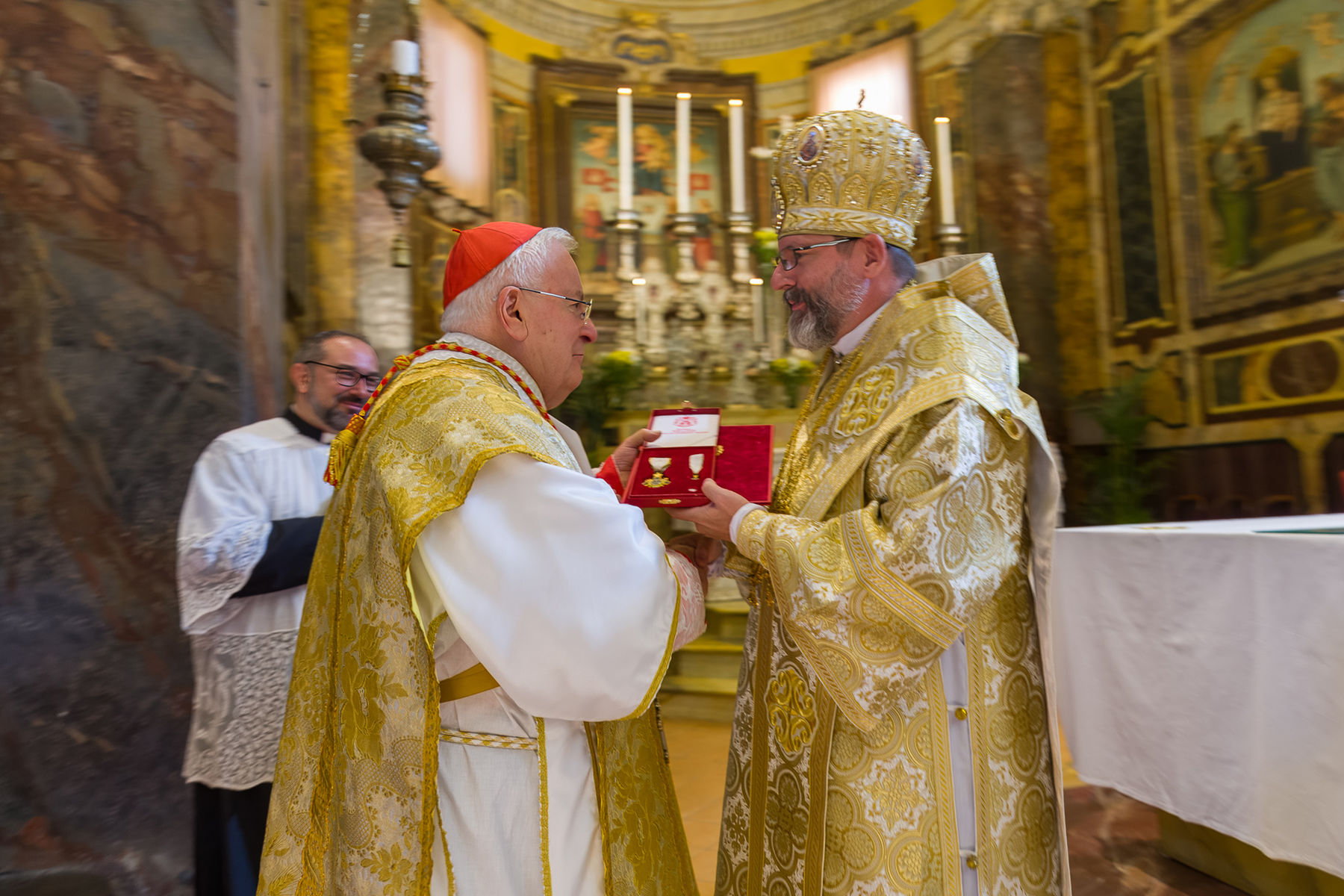 «Сьогодні я прибув до вас, щоби здійснити важливий жест — за рішенням Постійного Синоду Єпископів маю честь вручити найвищу нагороду УГКЦ його еміненції кардиналові Бассетті, що ввійде в історію нашої Цекви співтворцем Апостольського екзархату для українців візантійського обряду в Італії. Можливо, тоді ми навіть не усвідомлювали, яке велике значення матиме ця структура в умовах війни в Україні. Сьогодні через неї Церква-мати відкриває свої обійми для багатьох синів і дочок, що прибувають сюди з України».