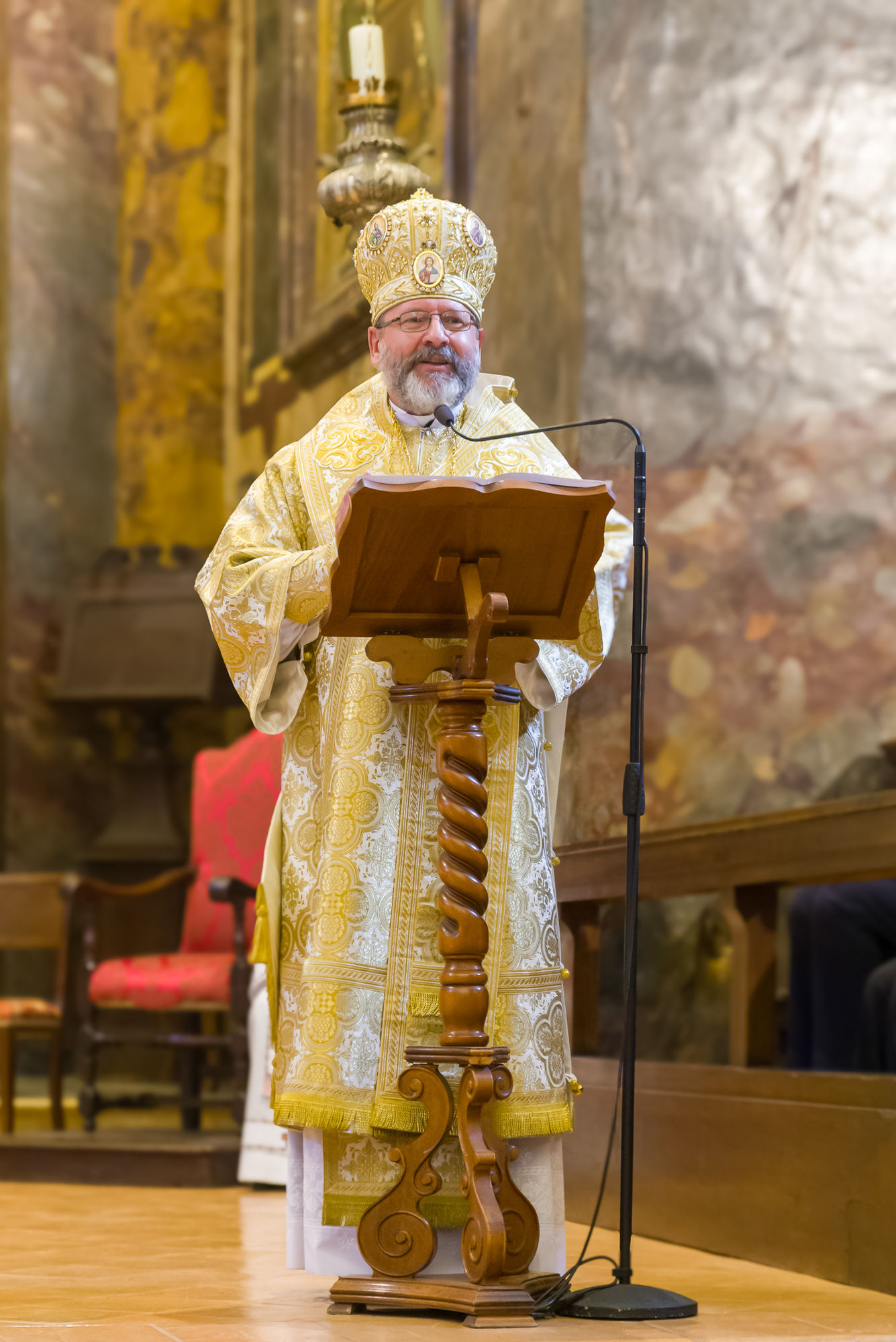 У проповіді під час Святої Меси кардинал Бассетті подякував Главі УГКЦ за «братній візит до міста, в якому живу понад рік. Упродовж служіння як ариєпископ Перуджі та президент Єпископської конференції Італії я намагався плекати сопричастя з Вами та Церквою, яку Ви очолюєте». Кардинал Бассетті пригадав харитативну співпрацю між «Карітас-Київ» та організацією «Ґомена», свій візит до України 2018 року та співпрацю у багатьох проєктах між Італійською Церквою та УГКЦ.