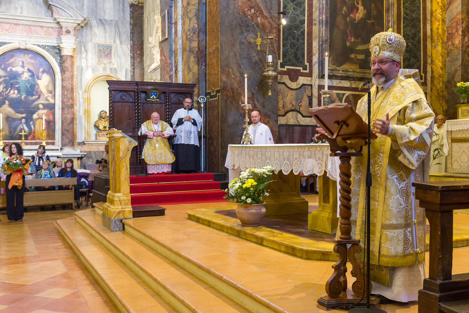 Після Богослужіння Блаженніший Святослав розповів присутнім про гуманітарну ситуацію в Україні та подякував італійському народові за солідарність і відкритість до українських біженців.