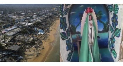 Статуя Гваделупської Богородиці, включаючи мантію з тканини, залишилася недоторканою під час руйнувань, спричинених ураганом Отіс, який минулого тижня обрушився на прибережне місто Акапулько та інші райони мексиканського штату Герреро з поривами вітру до 200 миль/год (понад 320 км/год).