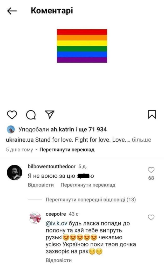 Прихильники ЛГБТ-ідеології та фемінізму продовжують бажати українським військовим загибелі, полону, каліцтва чи іншого нещастя і по нинішній день. Зазвичай ліві реагують таким чином на те, що захисники говорять, що воюють аж ніяк не за лібералістичні «цінності», або ж просто констатують, що не зустрічали в зоні бойових дій «численних ЛГБТ-військових» (фейки про яких використовують у пропаганді учасники та лобісти руху ЛГБТ).