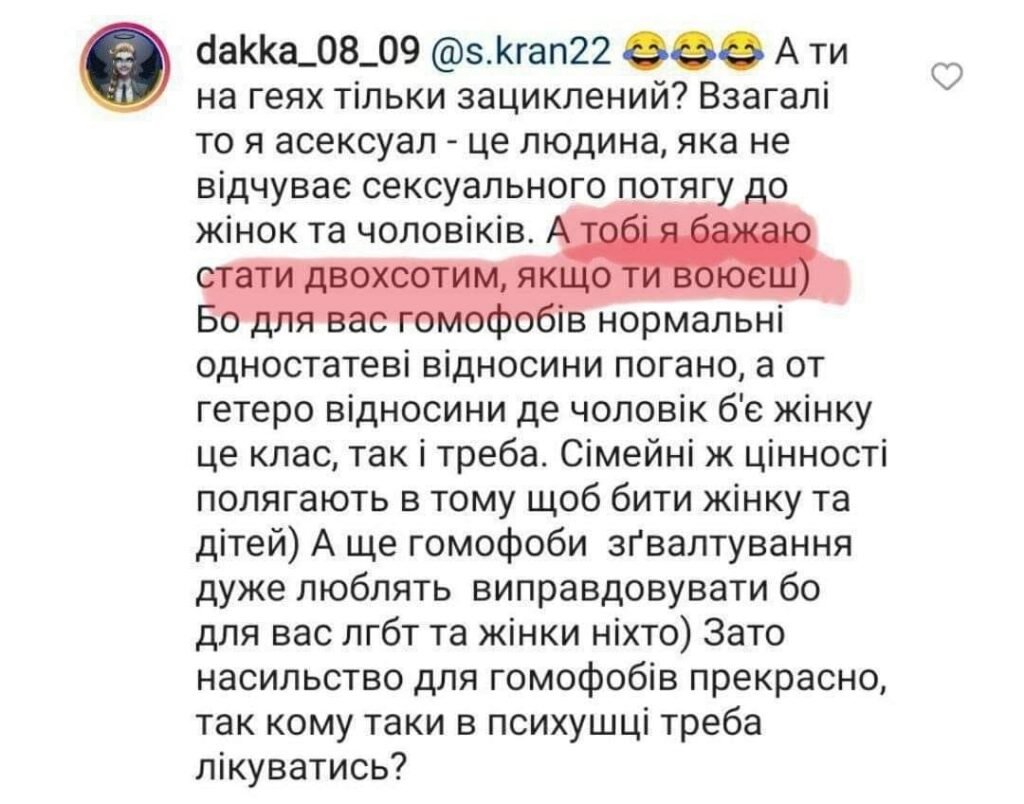 Агресія лівих у бік українських вояків не є чимось новим. Особливо активними тут були і залишаються представники ЛГБТ-організацій. Навіть у перші місяці повномасштабної війни, здебільшого перебуваючи за кордоном, деякі з них відверто бажали смерті українським добровольцям, відомим консервативними чи націоналістичними поглядами. Адресатами таких побажань були, приміром, відомий громадський і військовий діяч Євген Карась, а також вояки формувань «Фрайкор» та «Реванш».