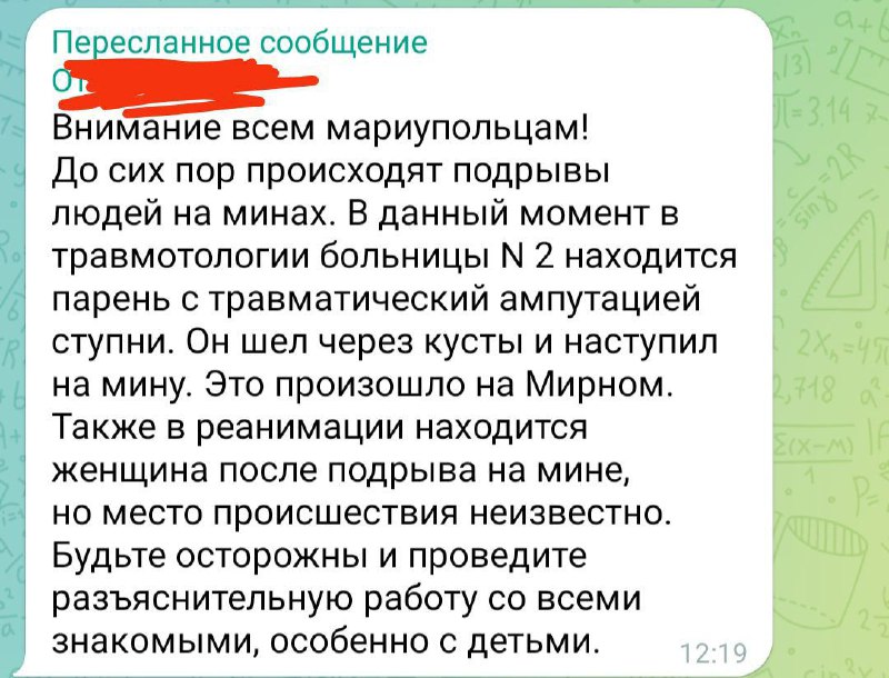 ‼️Маріупольці підриваються на мінах. На окупованих територіях небезпечно. Відомі випадки, коли люди продовжують підриватися на мінах та їм ампутують кінцівки.