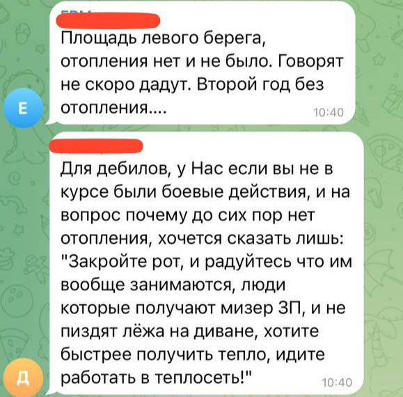 😡Крім того, жителі зауважують, що у "Тепломережі" брак працівників і вони працюють "за копійки". Відповідальні ж підрозділи нічого не роблять, аби вирішити цю проблему. Точніше – лише малюють райдужні звіти, поширюють їх у місцевих ЗМІ, але це не відповідає дійсності.