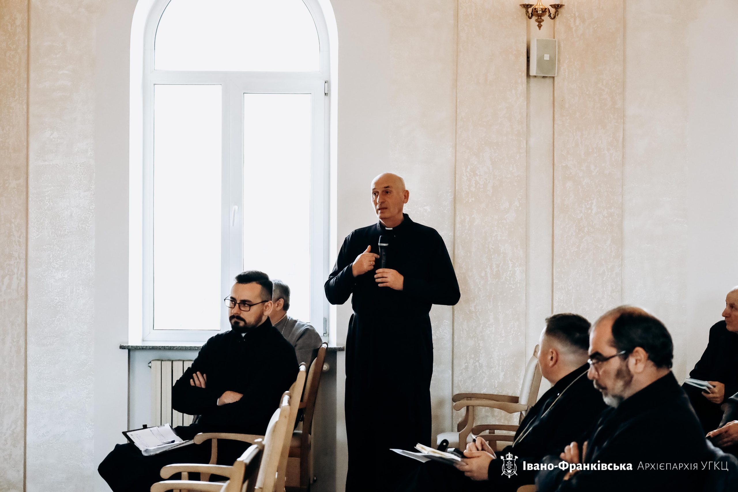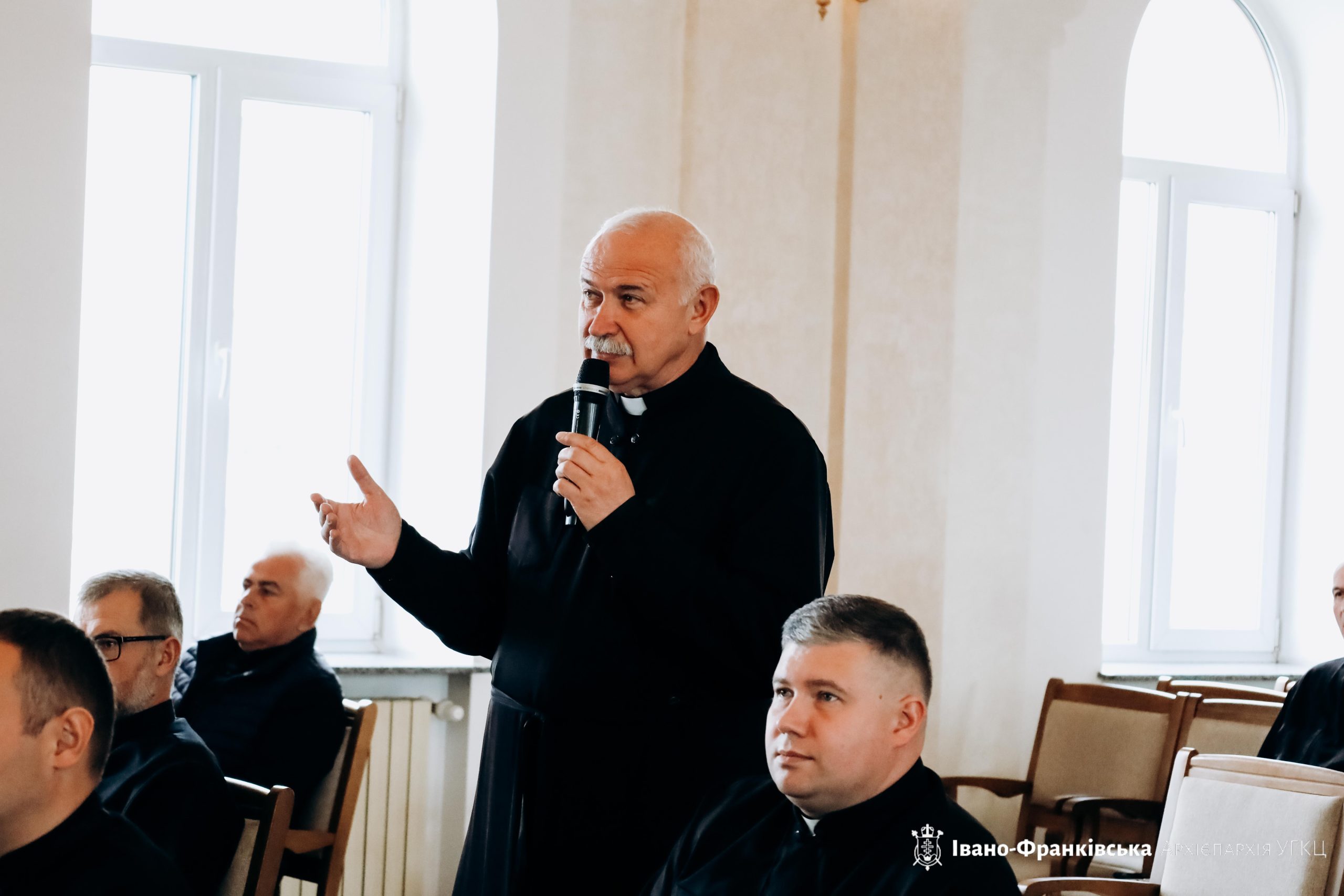 Пізніше слово надали о. Ярославу Рохману, голові Комісії у справах душпастирства охорони здоров’я Архієпархії, який запросив душпастирів на семінар «Основи попередження насильства щодо неповнолітніх та вразливих осіб у середовищі Церкви».