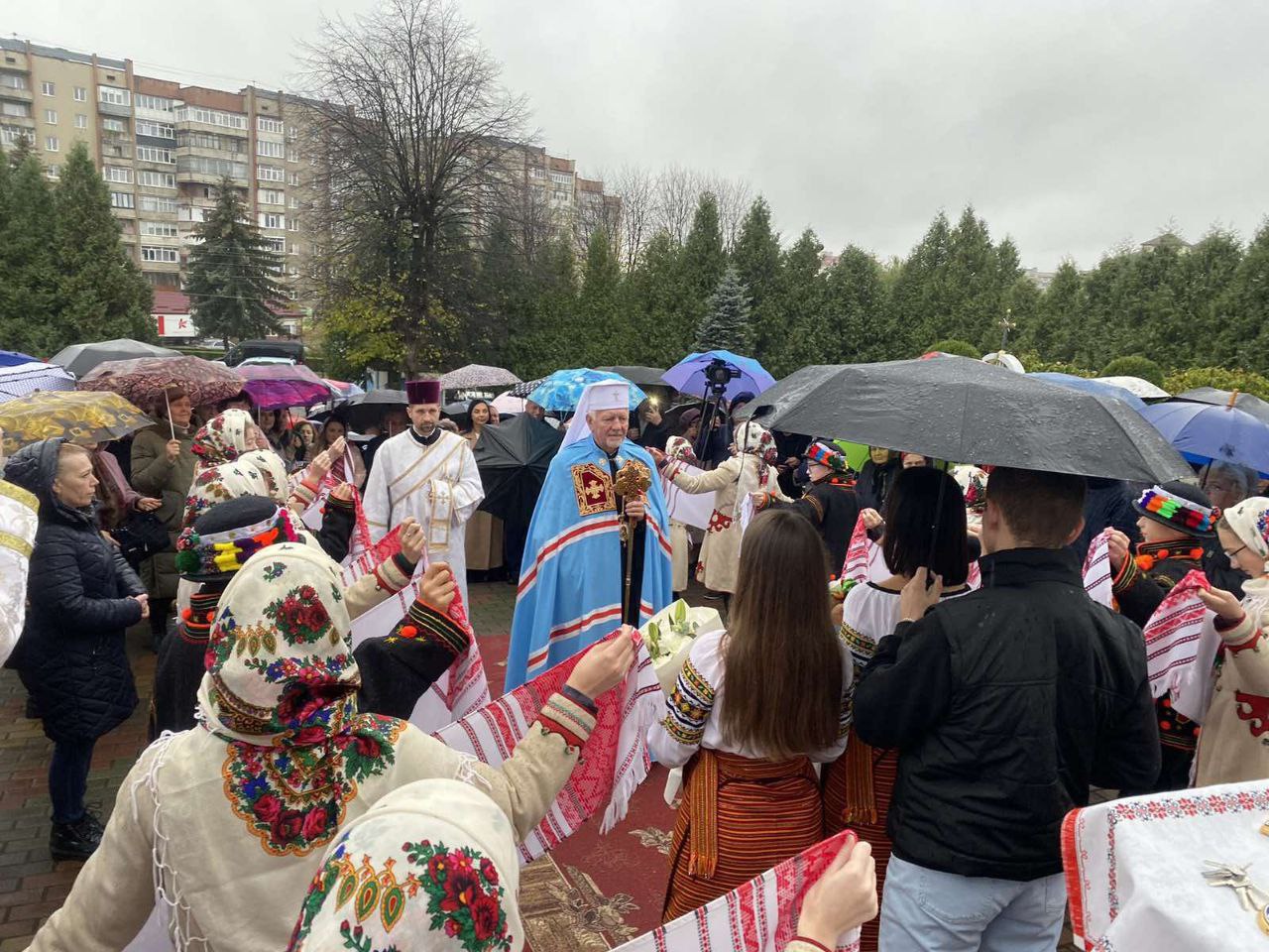 На подвір’ї храму Митрополита Володимира урочисто зі словами вітань зустріла парафіяльна молодь, вірні та священнослужителі святині, зокрема настоятель о.Іван Бігун, які запросили Архієрея до храму.