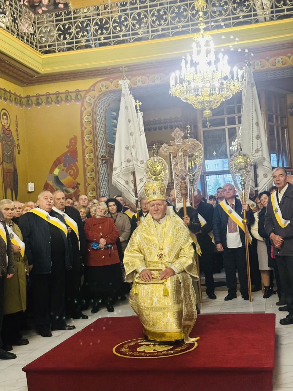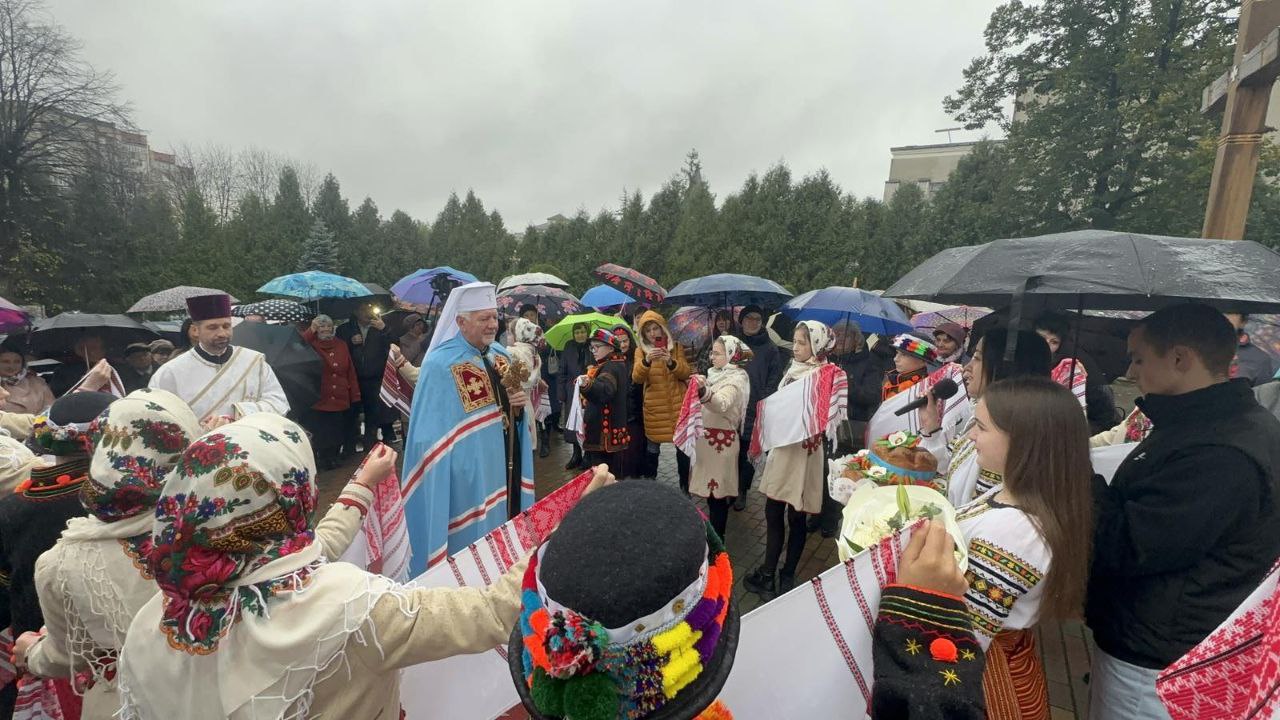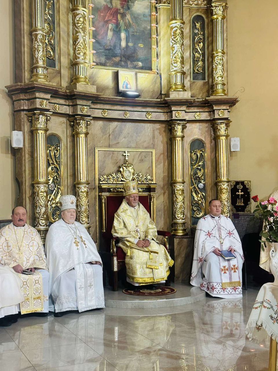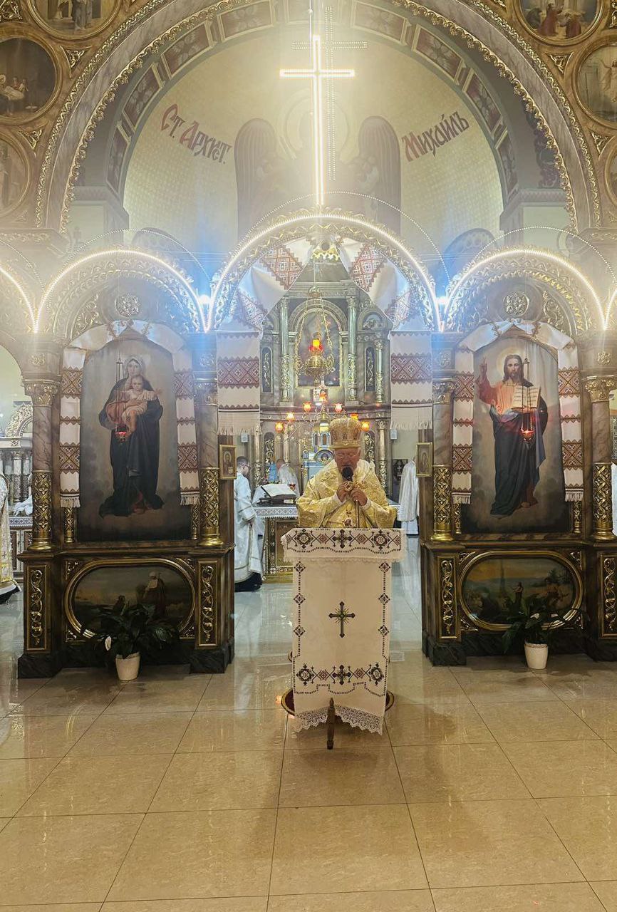 Звертаючись до присутніх в часі проповіді, Владика Володимир розповів про свято, яке відзначаємо за новим календарем 8 листопада, про собор Архистратига Михаїла і всіх Небесних сил. А відтак мовив: «Святий Архистратиг Михаїл на чолі добрих ангелів подолав дракона-диявола, сатану, тому на іконах завжди бачимо Михаїла з мечем у руці, як він перемагає лукавого дракона, ворога Божого і ворога людського роду. Архистратиг Михаїл — це могутній Воїн, перший правоохоронець на чолі Небесних Сил. Він переміг збунтованих, гордих ангелів, скинувши їх у тьму непроглядну. Він є найкращим прикладом борця й охоронця Божого Закону».