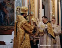 Відтак присутні рушили до храму, де розпочалась Архиєрейська Літургія, яку владика Микола очолив у співслужінні пароха храму о. Миколи Лужного, о. Назара Кібеля, сотрудника святині, о. Віталія Храбатина, о. Тараса Нейлюка та о. Зеновія Слоїка.