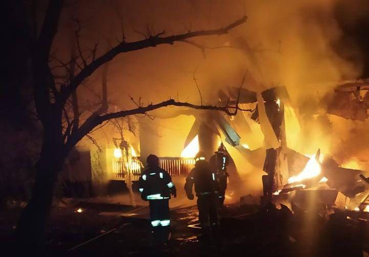 ▪️Але два "шахеди" поцілили по будівлі. Є руйнування. Виникла пожежа, яку рятувальники приборкали.