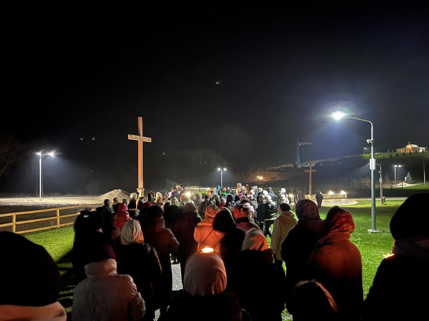 Прочани спільно зі священниками пройшлися шляхом Хресної дороги на гору, зупиняючись на стаціях, щоби роздумувати над страстями нашого Господа, повідомляють на сторінці парафії.