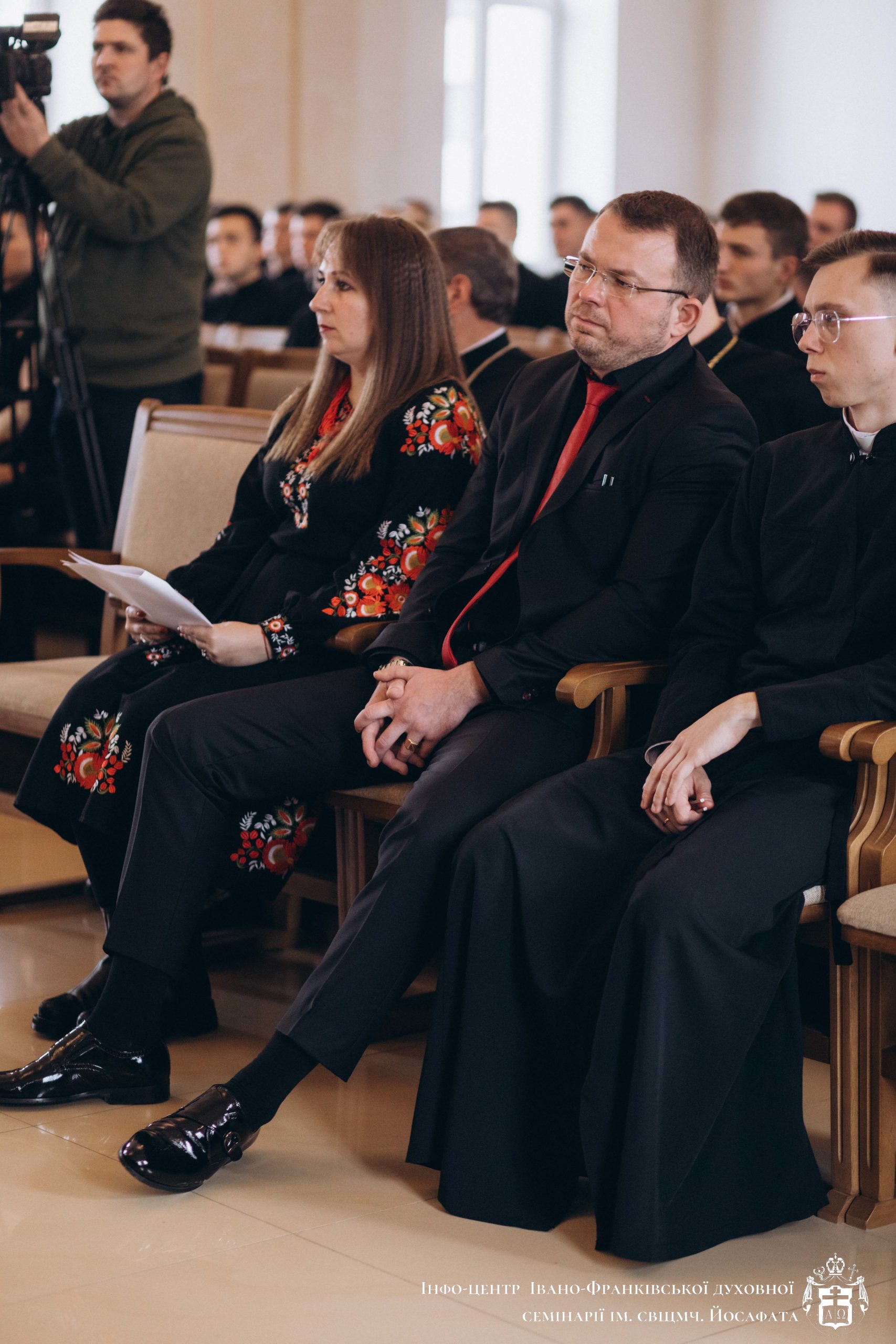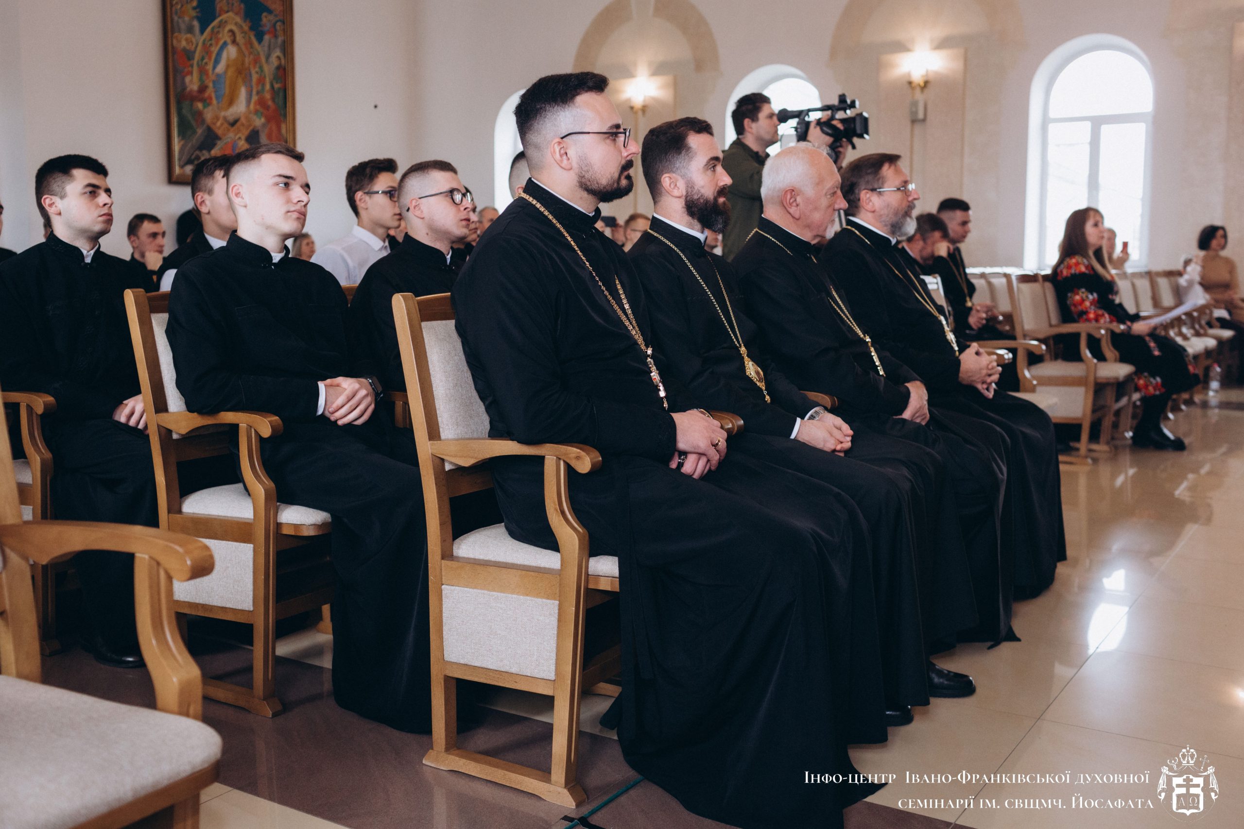 Потім ведуча заходу розповіла історію заснування Івано-Франківської духовної семінарії, що носить ім’я священномученика Йосафата Кунцевича.