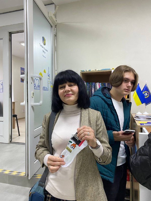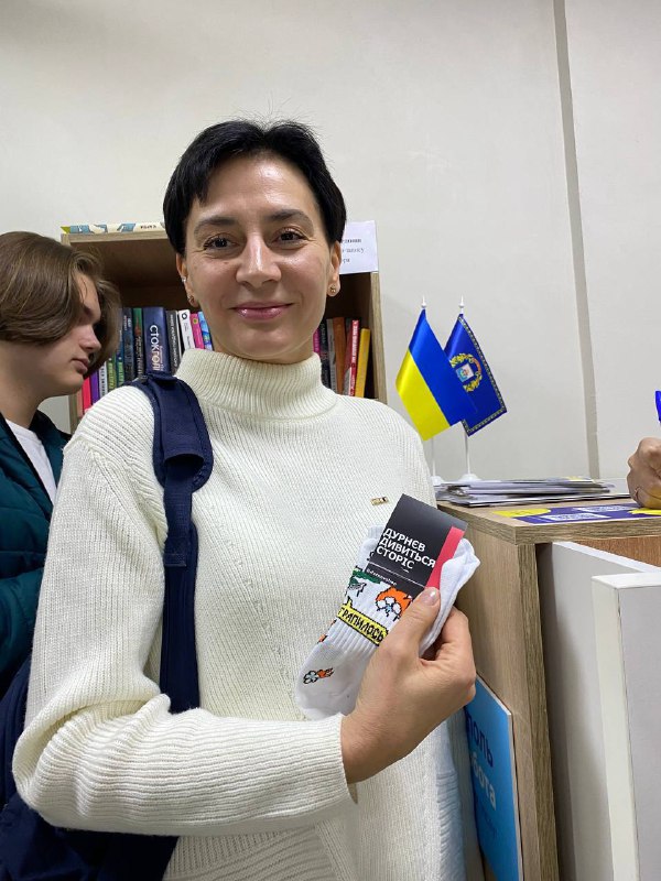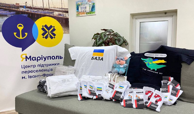 ⚡️Це чохли для телефонів та теплі шкарпетки. А ще перші 100 відвідувачів центру зможуть взяти участь у лотереї, де будуть розіграні футболки від бренду Олексія Дурнєва. Маріупольці були раді таким сувенірам та турботі.