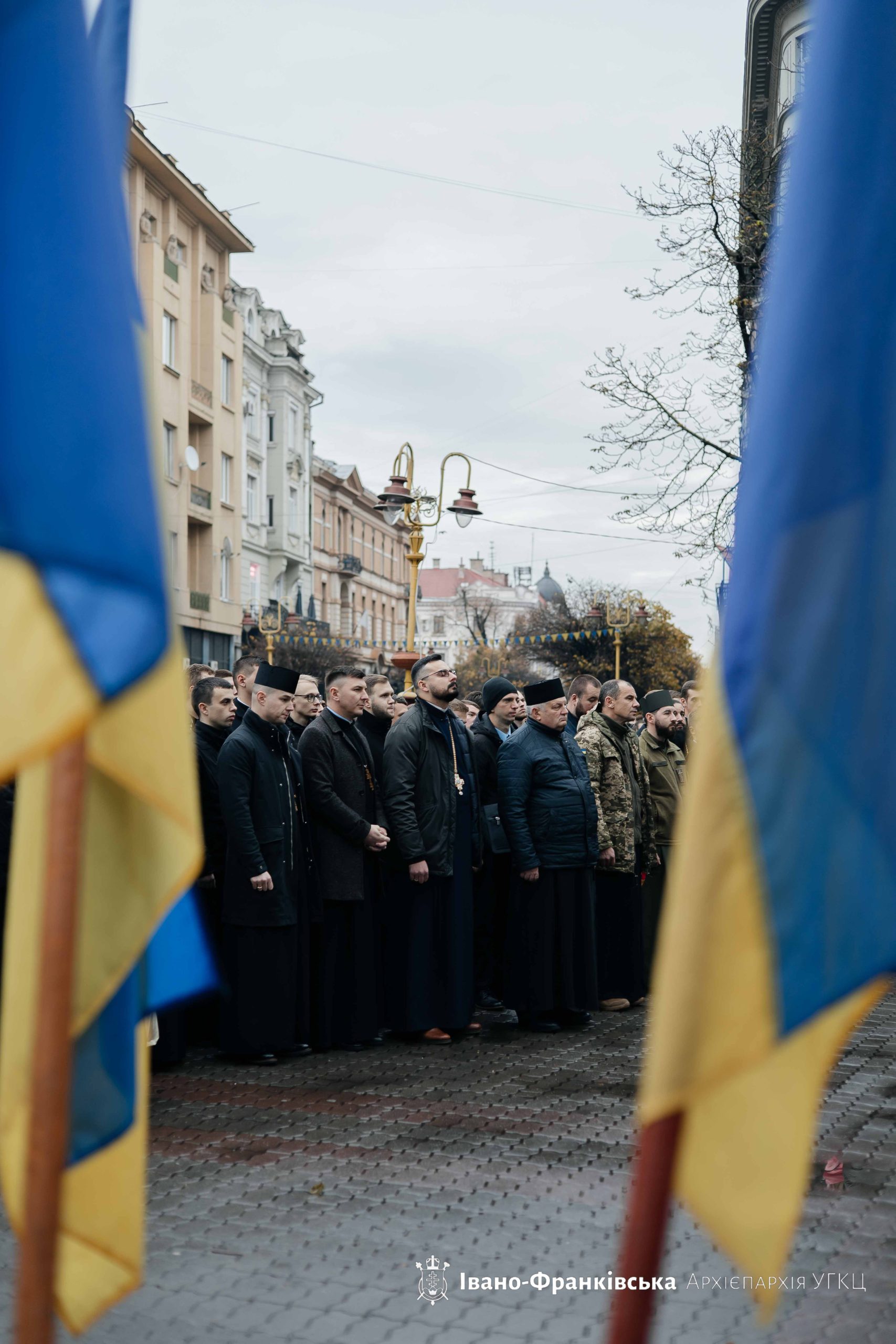 Заупокійне богослужіння очолив Владика Феогност Бодоряк, Єпископ Богородчанський ПЦУ, у співслужінні отців ректорату Івано-Франківської духовної семінарії, а також представників духовенства РКЦ та ПЦУ.