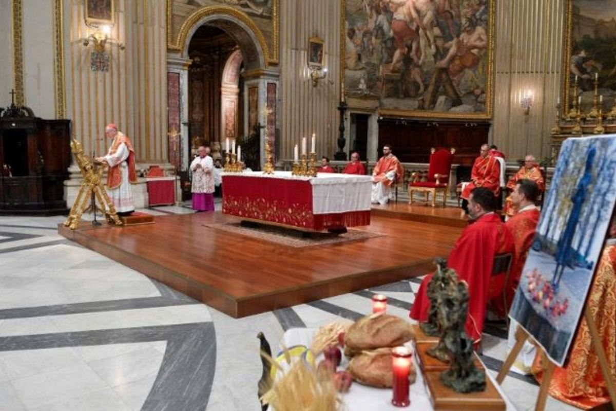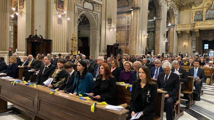 Богослужіння, приурочене до вшанування пам’яті жертв Голодомору 1932–1933 років, відбулося з ініціативи Посольства України при Святому Престолі. Святу Месу співслужили кардинал Клаудіо Ґуджеротті, Префект Дикастерії для Східних Церков, владика Діонісій Ляхович, Апостольський екзарх для українців візантійського обряду в Італії, та численні священники, між якими працівники дикастерій Римської Курії, представники чернечих спільнот і священнослужителі екзархату УГКЦ в Італії. На запрошення Посла України прибули представники дипломатичного корпусу, акредитованого при Святому Престолі, та численна українська громада Риму, представлена богопосвяченими особами та мирянами.