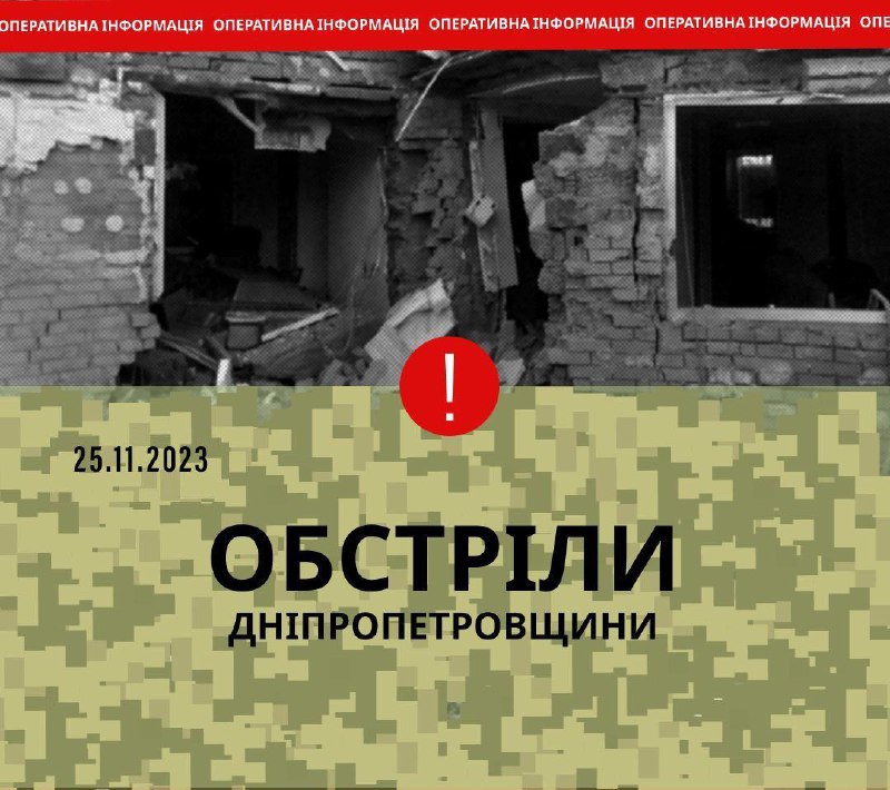 ❗️Нікопольщина. Жодного тихого дня… Сьогодні ворог вкотре тероризував тамтешніх мешканців 25.11.2023, Субота | 18:37 Автор допису: Голова Дніпропетровської обласної військової адміністрації ❗️Нікопольщина. Жодного тихого дня… Сьогодні ворог вкотре тероризував тамтешніх мешканців. З важкої артилерії вдарив по Мирівській громаді. На Марганецьку – скинув боєприпас з БпЛА. Та, на щастя, ніхто не постраждав. В інших районах області – без обстрілів. Джерело Друк / PDF