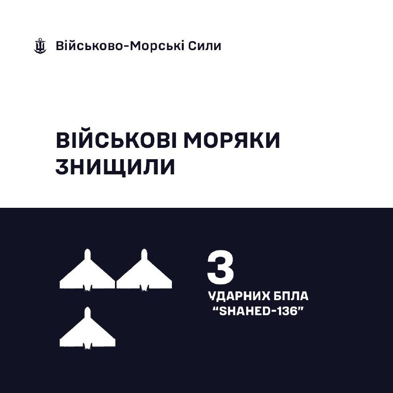 ⚓️🇺🇦 Військові моряки знищили 3 «Shahed-136»
