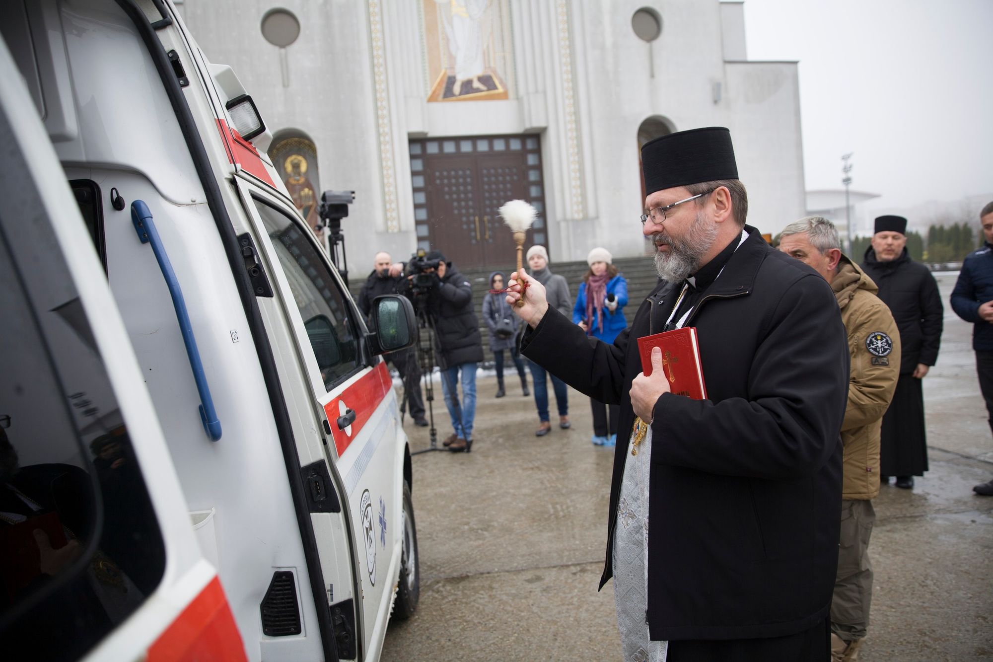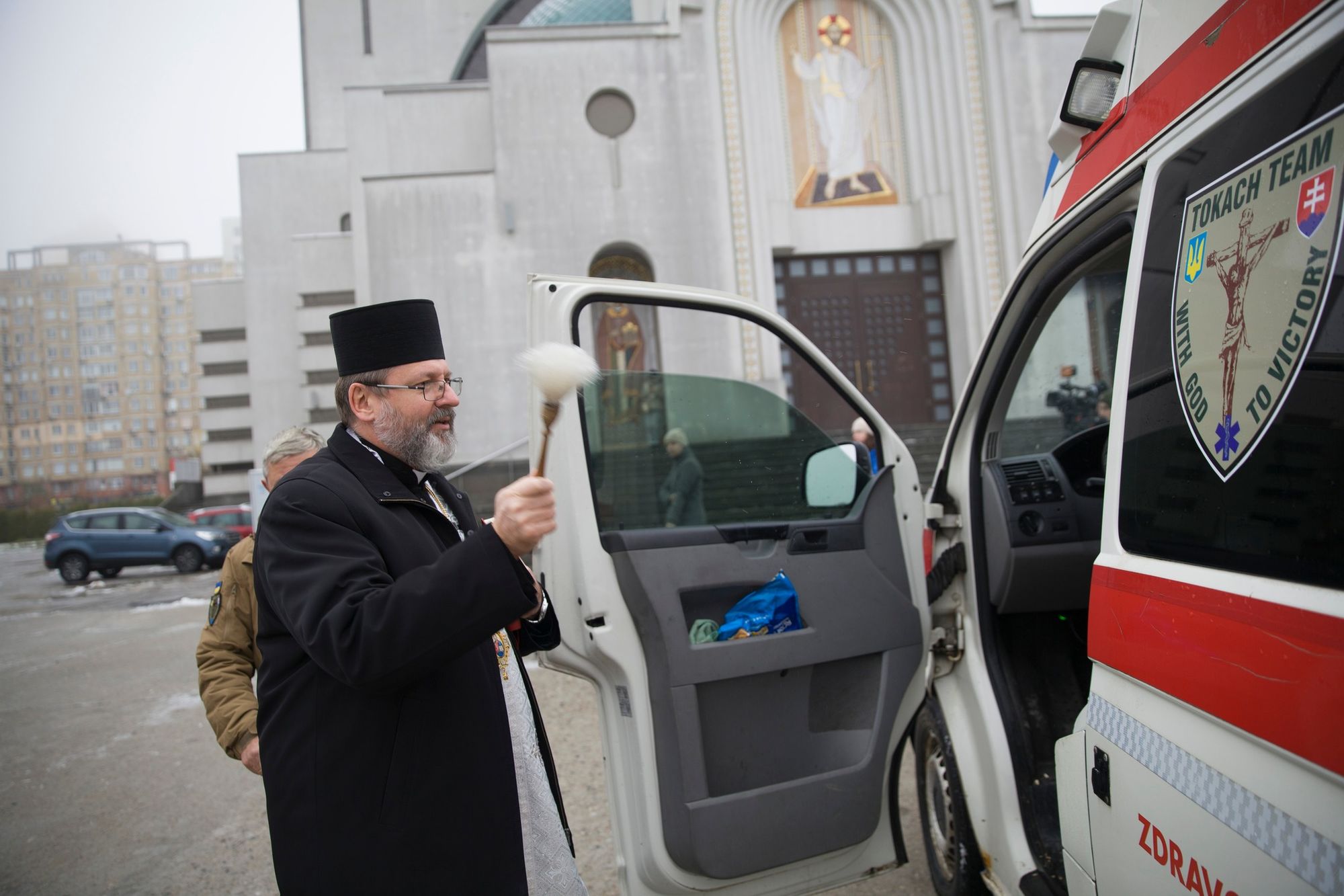 29 листопада Отець і Глава УГКЦ Блаженніший Святослав на території Патріаршого собору Воскресіння Христового в Києві освятив дві карети швидкої допомоги та позашляховик, які попрямують на фронт.