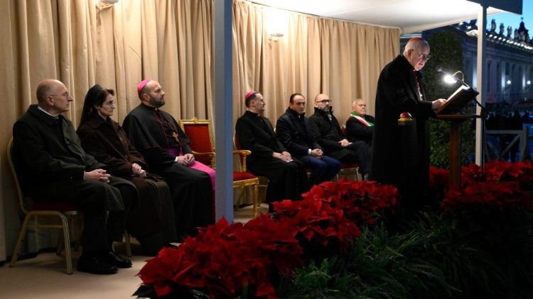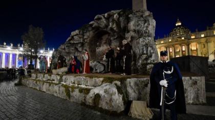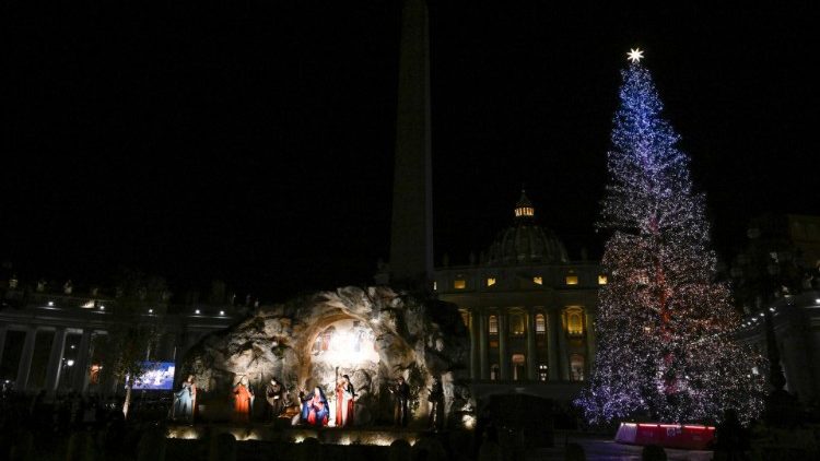 Ввечері, в суботу 9 грудня 2023 р., коли Рим оповили сутінки, на площі Святого Петра у Ватикані засяяла різдвяна ялинка та було інавгуровано різдвяний вертеп. Традиційну церемонію, на яку прибули офіційні делегації з місцевостей, з яких походять ці різдвяні символи, очолив кардинал Фернандо Верґес Альсаґа, Президент Губернаторства Держави-Міста Ватикану.