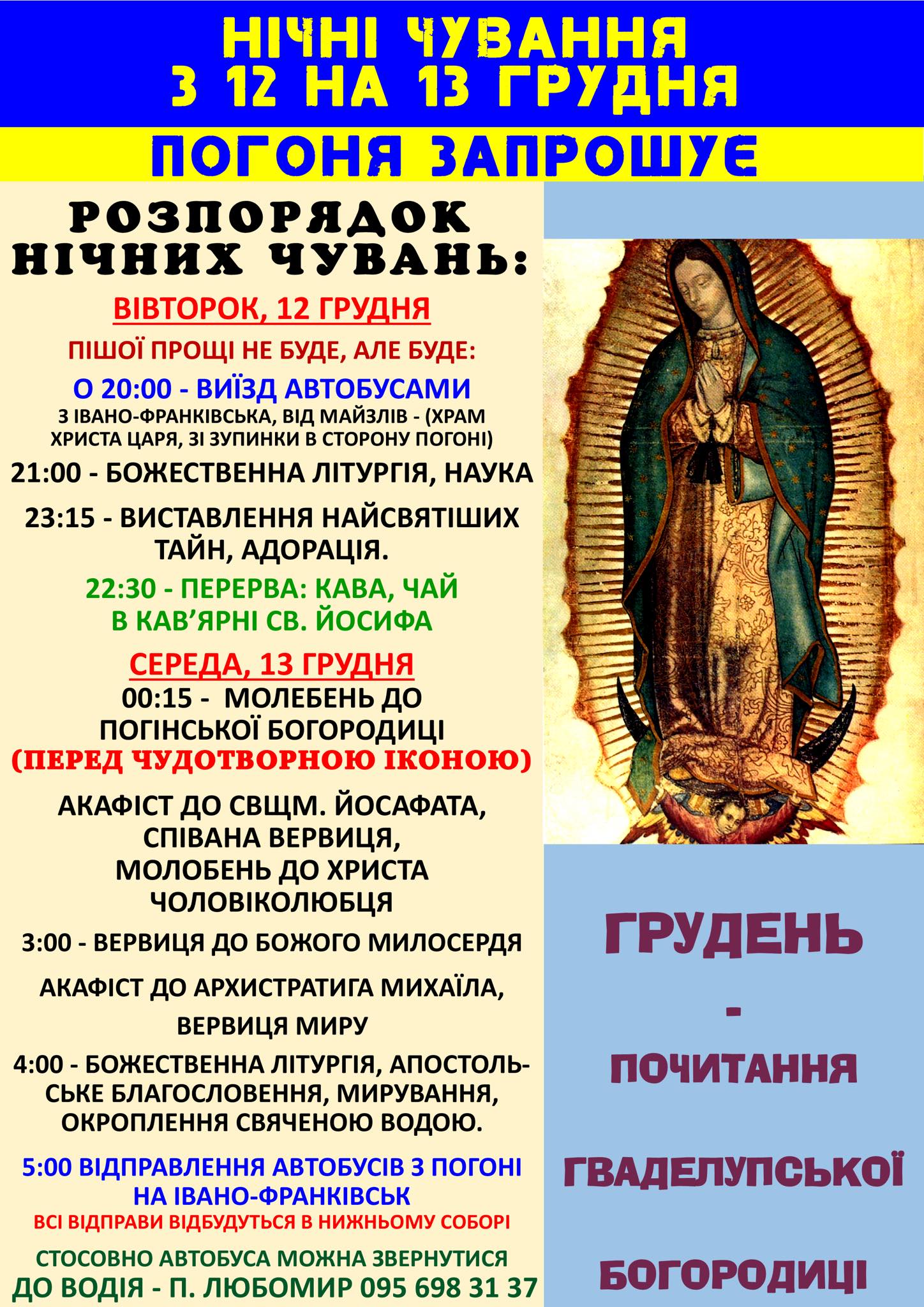 Анонс! З 12 на 13 грудня у Погоні відбудуться молитовні нічні чування