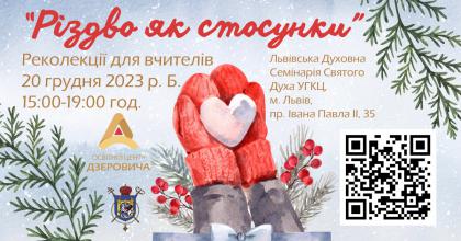 Освітній центр ім. Дзеровича організовує день духовної віднови для освітян Львівщини. Реколекції «Різдво як стосунки» відбудуться наступного тижня в стінах Львівської духовної семінарії Святого Духа УГКЦ. Про це Центр інформує у соцмережі «Фейсбук».