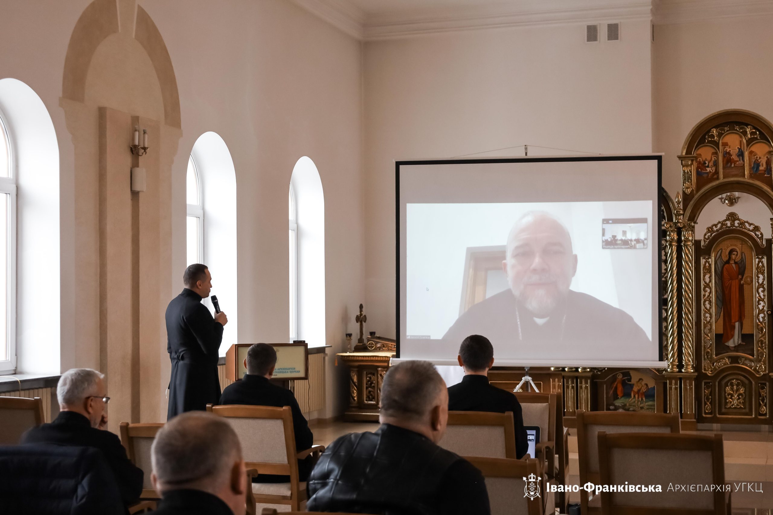Далі у режимі онлайн до духовенства звернувся Владика Василій Тучапець, Екзарх Харківський, який розповів про ситуацію в Харківському Екзархаті – місцевості, яка чи не найбільше постраждала від війни й до цього часу перебуває під обстрілами. Єпископ також пригадав, що Івано-Франківська Архієпархія є відповідальною за підтримку Харківського Екзархату.