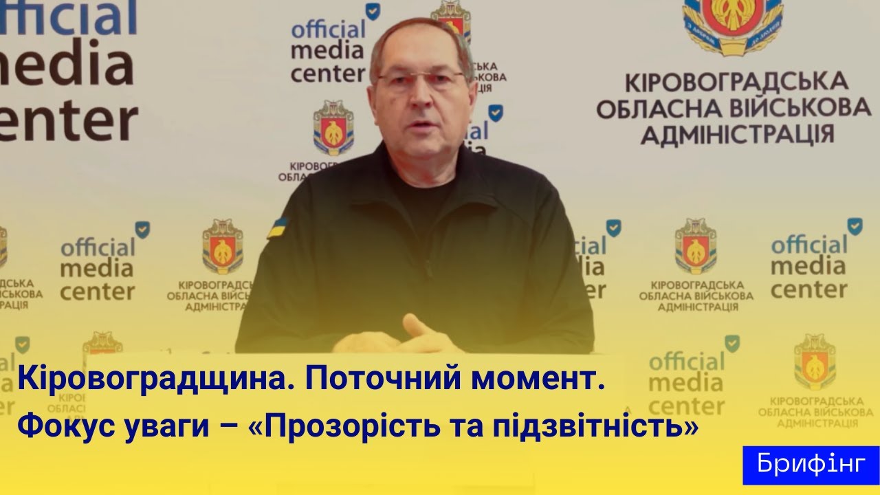 Кіровоградщина. Поточний момент. Фокус уваги – «Прозорість та підзвітність». 14.12.2023, Четвер | 13:33 Автор допису: Голова Кіровоградської обласної військової адміністрації Кіровоградщина. Поточний момент. Фокус уваги – «Прозорість та підзвітність». https://youtu.be/BeXO8uE2Vx8 Кіровоградщина. Поточний момент. Фокус уваги – "Прозорість та підзвітність" // Брифінг – YouTubeНачальник Кіровоградскьої ОВА Андрій Райкович про діяльність робочої групи "Прозорість та підзвітність". Джерело Друк / PDF