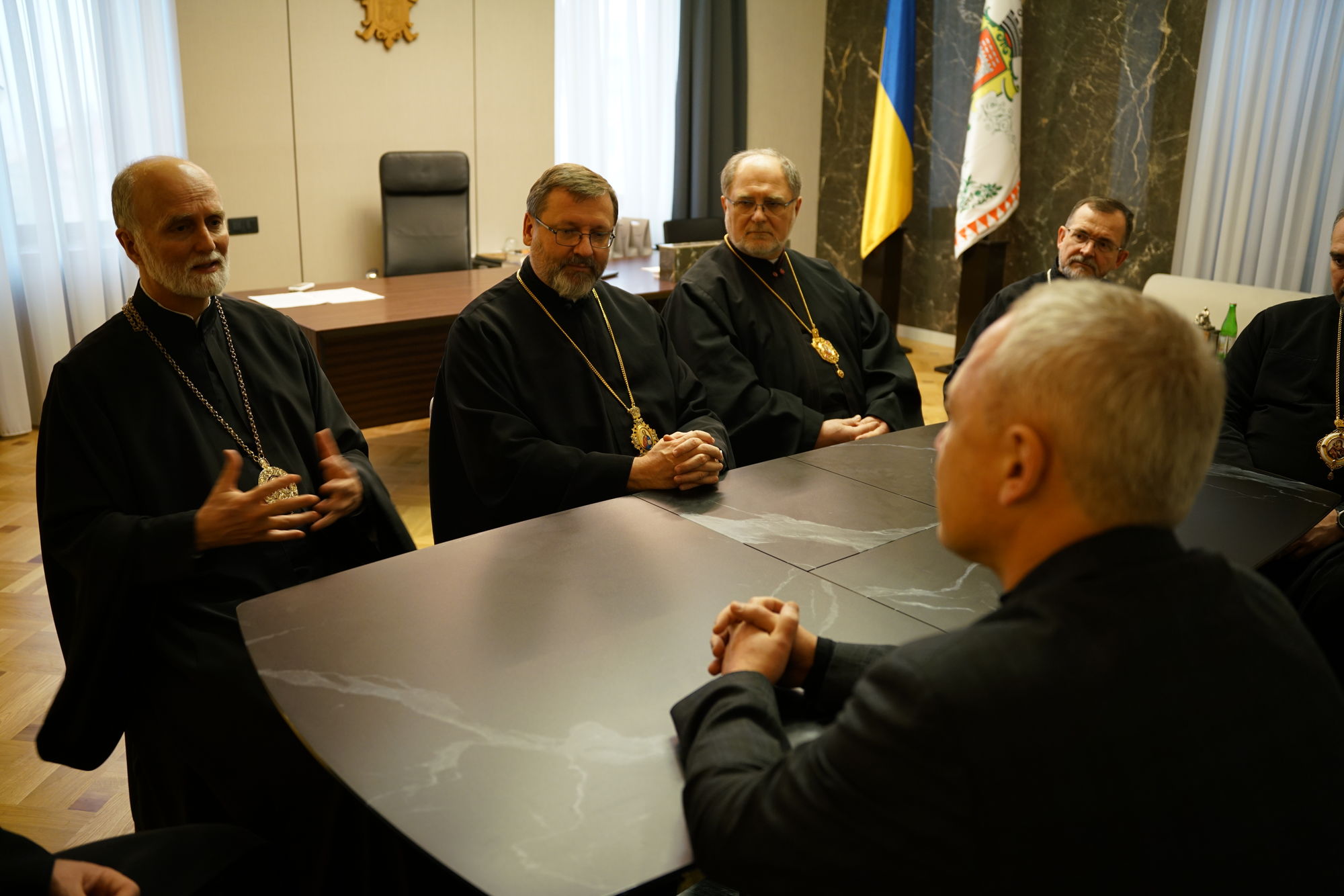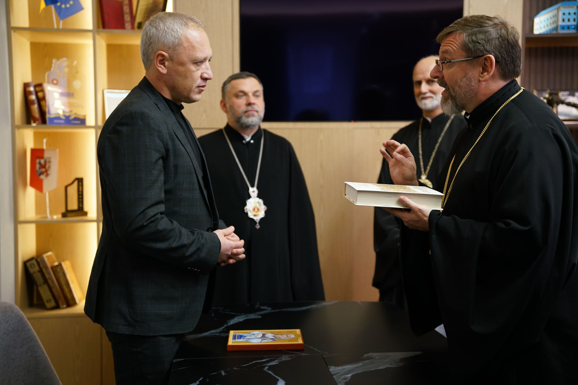 На зустрічі з міським головою Патріарх подякував за відкритість міської ради до Церкви, засвідчив повагу і підтримку Української Греко-Католицької Церкви місцевій громаді. «Наша Церква говорить до сердець людей, народів, які знаходяться у країнах, де перебувають українські біженці, де є наші єпархії та екзархати. Не маємо права зневірюватися, змучуватися, бо світ нас підтримує, і сьогодні тут присутні владики Постійного Синоду засвідчують підтримку народів у тих країнах, де є їхнє місце служіння», — сказав Блаженніший Святослав.