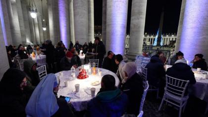 При столах прислуговувала молодь, а цю вечерю готували їхні батьки. Передусім це були працівники ЗМІ – італійського телебачення та деяких радіостанцій. «Вони були одягнені в костюми, на них були білі сорочки, як у офіціантів з топового ресторану. І коли наші убогі заходили під колонаду, кожен з цих молодих людей запрошував їх і підводив до місця за столом, присував стілець, а потім служили при столі. Це найкраща школа, це найкраще свідчення. Я думаю, що нічого прекраснішого не могло статися з цими дітьми, ніж прийти з батьками під колонаду і послужити бідним. Можливо, колись, читаючи Євангеліє, вони натраплять на уривок, де Ісус говорить: “Я був нагий, бідний, був у в’язниці, і ви відвідали Мене, прийшли до Мене, нагодували Мене”. І тоді може виявитися, що під колонадою Берніні вони служили самому Ісусу», – підкреслює Префект Дикастерії служіння милосердя.