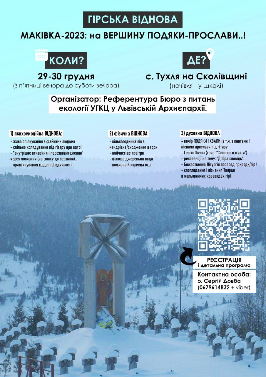 29-30 грудня 2023 р.Б. відбудеться молодіжна гірська віднова «Маківка-2023: на ВЕРШИНУ ПОДЯКИ-ПРОСЛАВИ..!»
