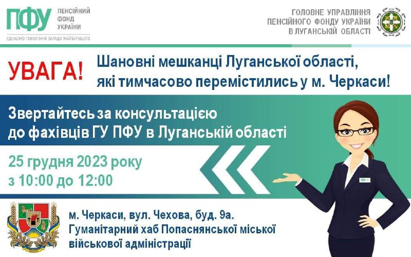 25 грудня луганчанам в Черкасах допоможуть із розв’язанням питань пенсійного забезпечення