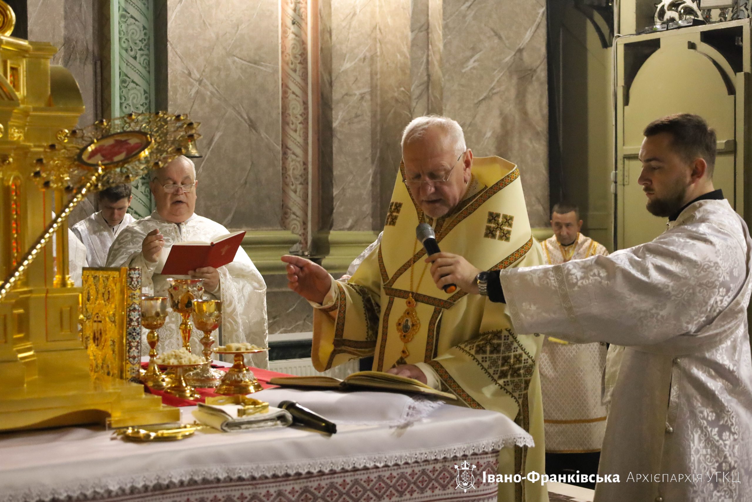 Урочисті моління в Архікатедральному соборі розпочалися зі святкової Утрені, а відтак відбулася Архієрейська Божественна Літургія, яку очолив Високопреосвященний Владика Володимир у співслужінні Єпископа-помічника Івано-Франківської Архієпархії Владики Миколи Семенишина, настоятеля собору митр. прот. Юрія Новіцького, а також душпастирів святині.
