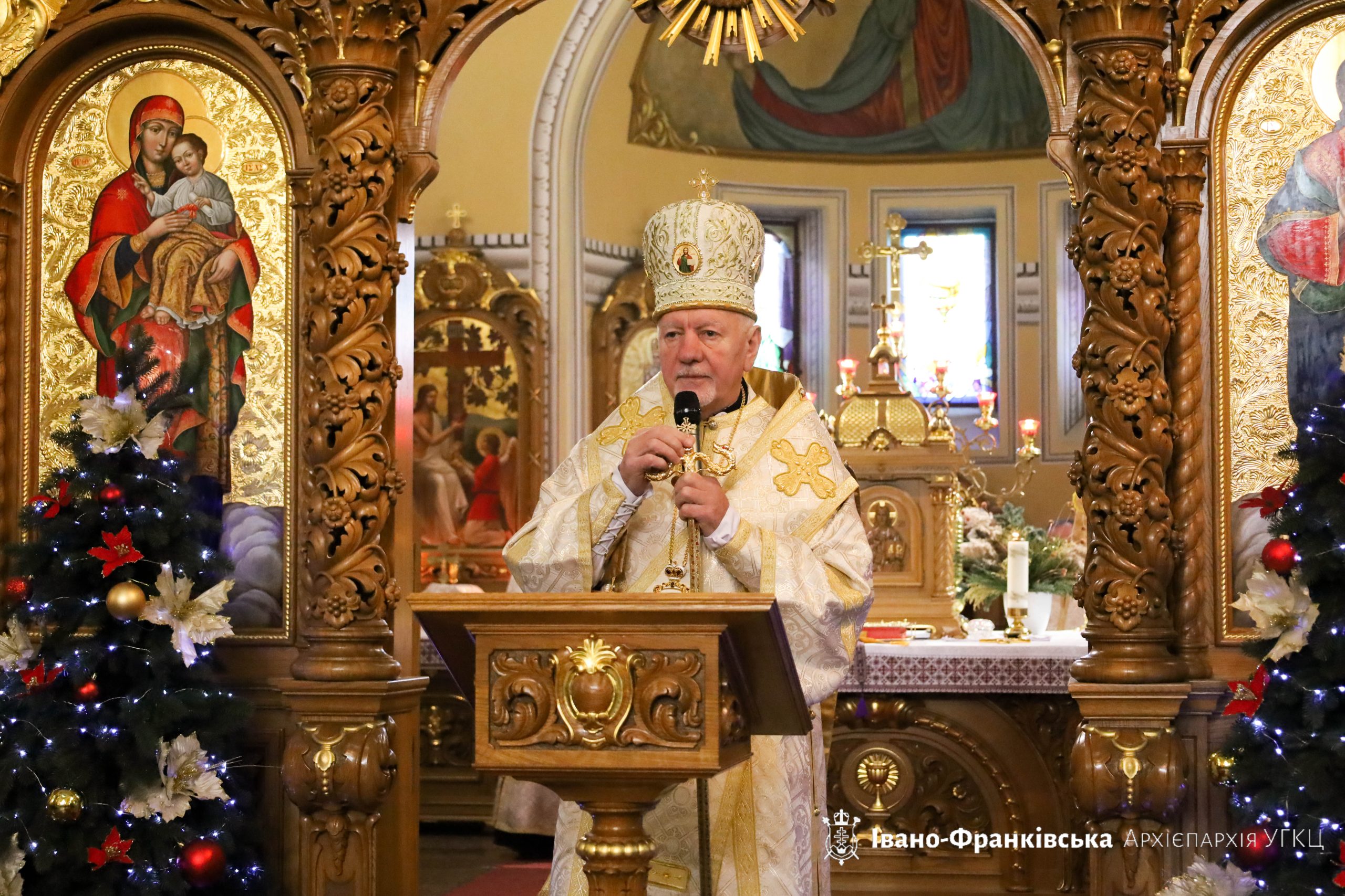 Звертаючись до присутніх у часі проповіді, Владика Володимир привітав всіх присутніх у храмі, а також ствердив, що цього дня молитва по-особливому підноситься за зачинателів фестивалю «Коляда на Майзлях», тих, хто його проводить сьогодні, а також за всіх учасників хорових колективів, які виступали на ньому. Архієрей також ствердив, що сьогодні вже важко уявити різдвяні свята у нашому місті без «Коляди на Майзлях», бо він справді став прикарпатською родзинкою.