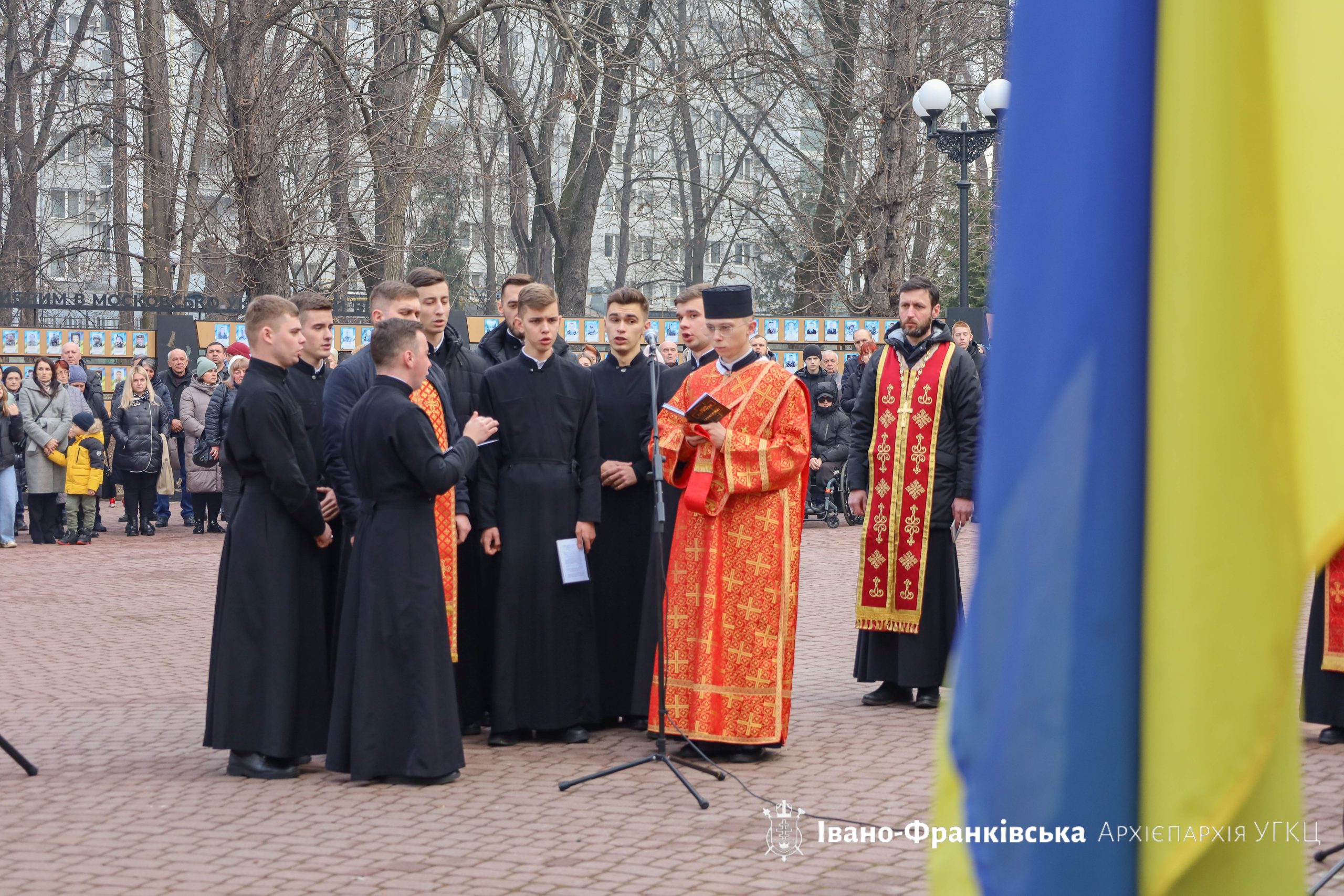 У п’ятницю, 29 грудня, у Меморіальному сквері міста Івано-Франківськ, як і щомісяця, відбувся пам’ятний захід «Дзвін пам’яті», приурочений Воїнам, які трагічно загинули у боротьбі за волю та незалежність України. Поминальне моління очолив Єпископ-помічник Івано-Франківської Архієпархії УГКЦ Владика Микола Семенишин.