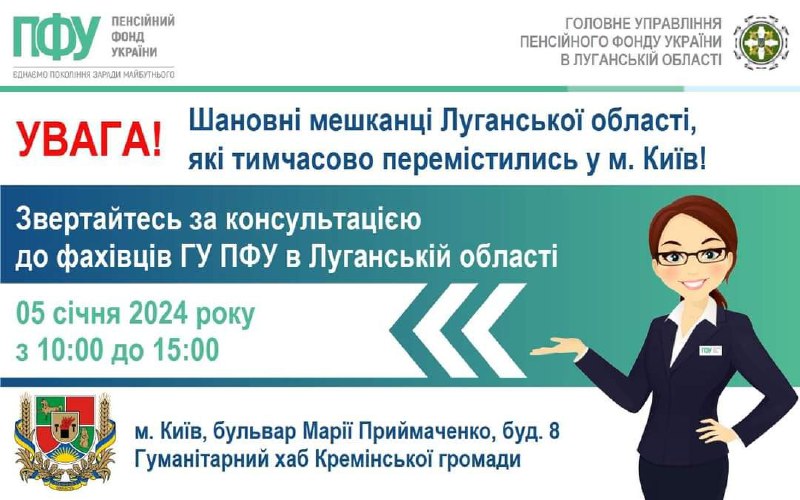 У Києві 5 січня на ваші запитання відповідатимуть спеціалісти пенсійного фонду Луганщини