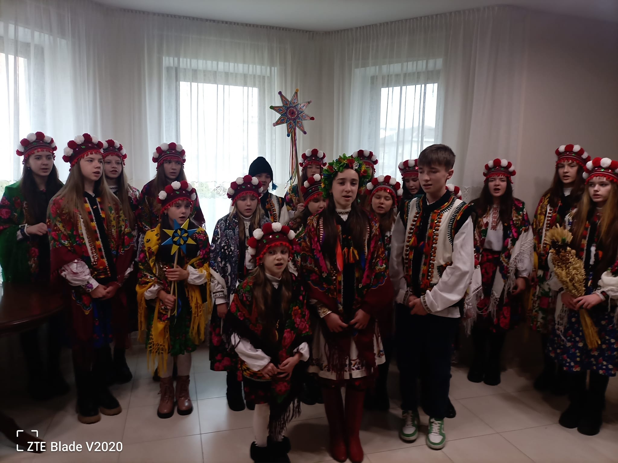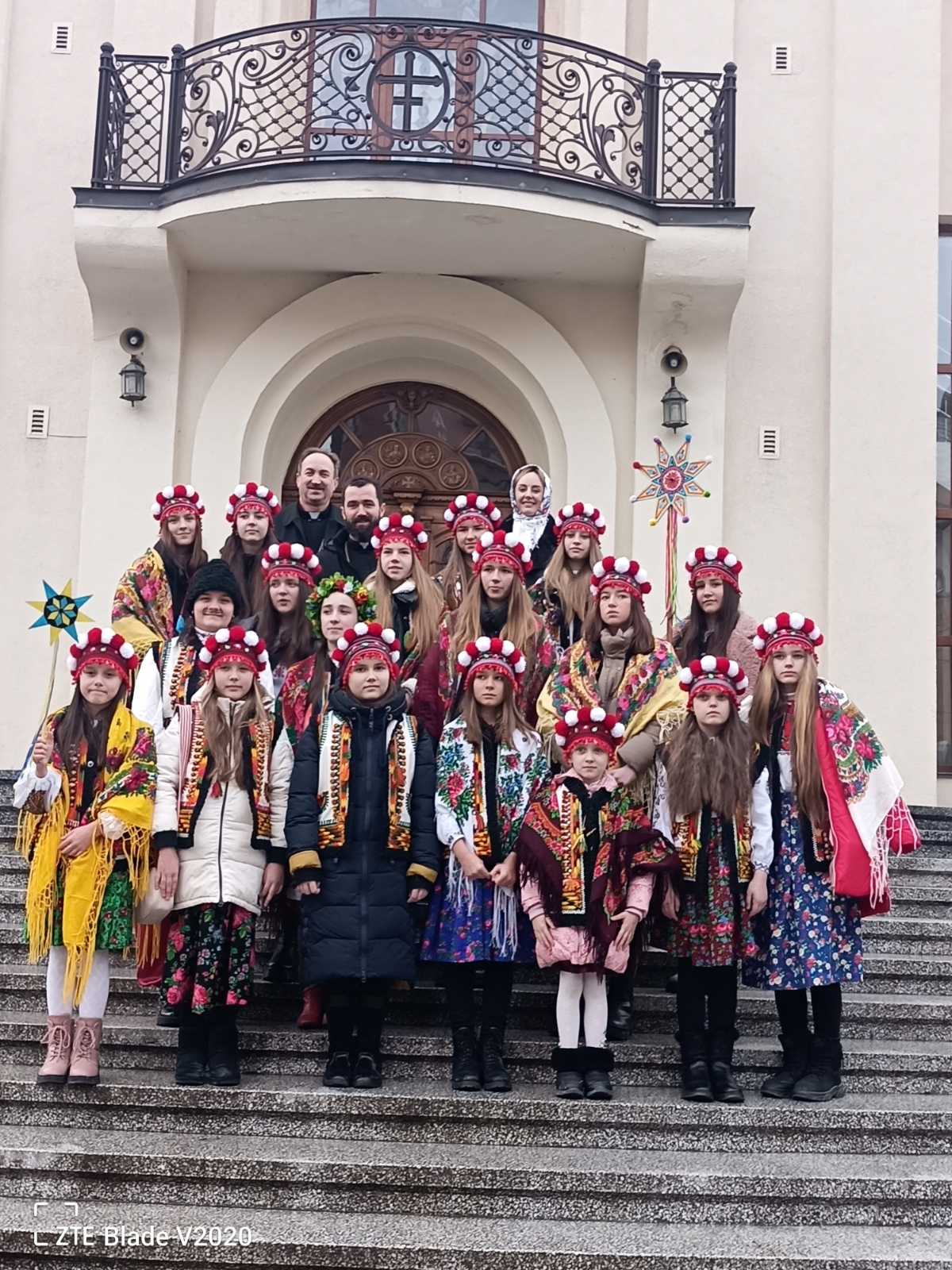 До групи колядників увійшли діти місцевої катехитичної школи, спільноти «Гарячі серця», а також вокального ансамблю «Пісенна скарбниця», які спільно не тільки моляться, а й плетуть вервиці для українських Захисників.