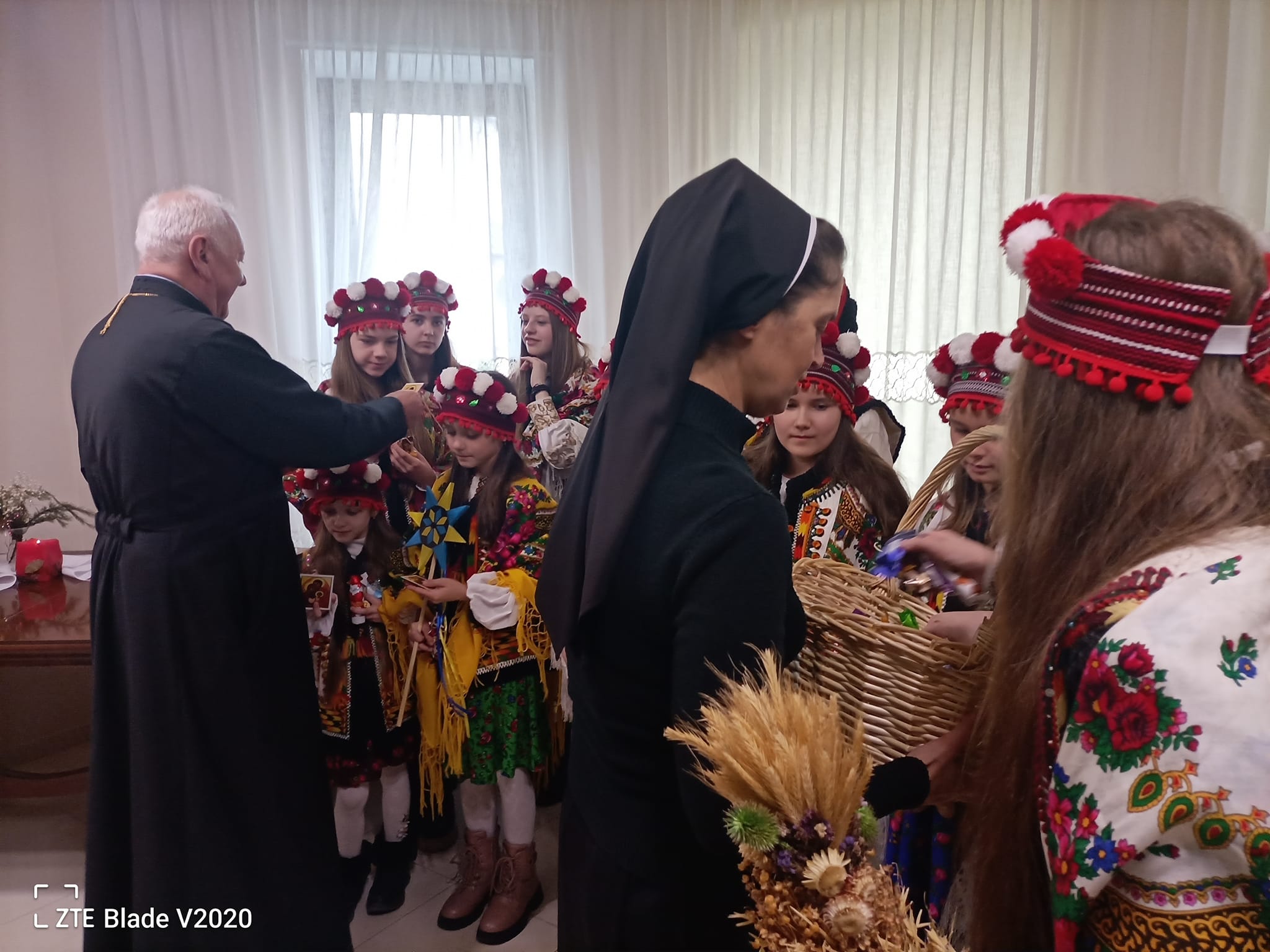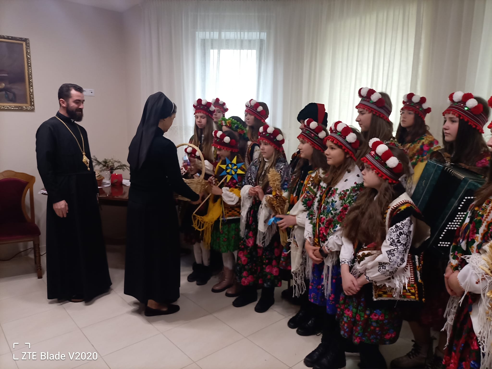 Наприкінці о. Володимир подарував Єпископам вервиці, сплетені дітьми. Своєю чергою, Владики щиро подякували колядникам за візит, а також уділили всім присутнім своє архієрейське благословення.