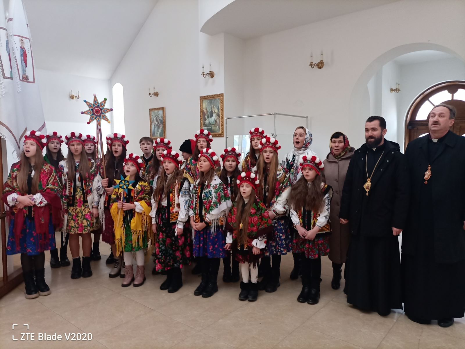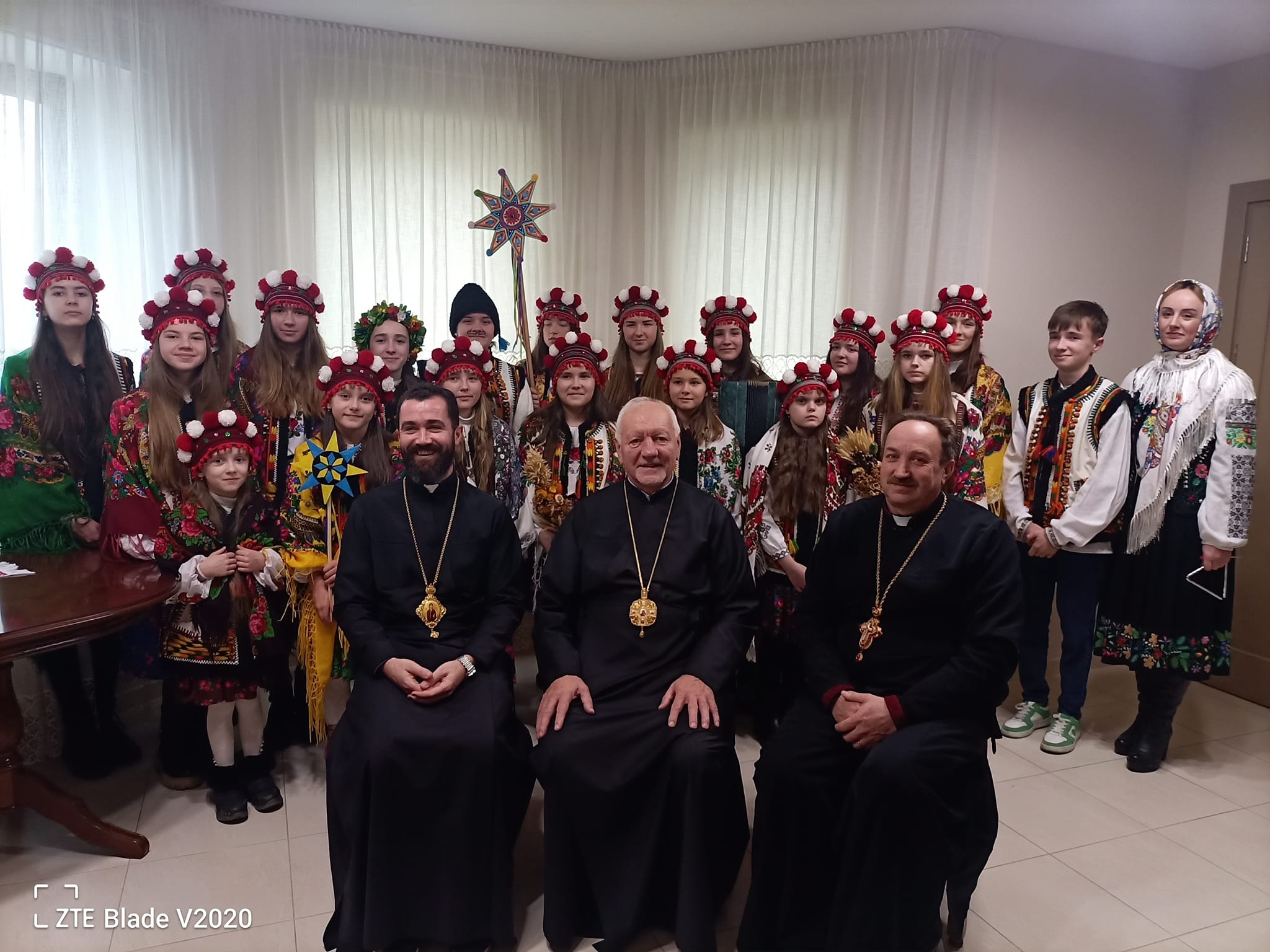 Опісля спільної коляди у резиденції, діти разом із духовенством відвідали храм Різдва Пресвятої Богородиці, де спільно помолилися та поколядували.