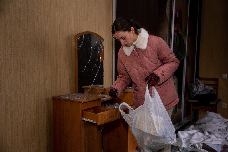 Підлога всіяна битим склом. Потрощені меблі. Люди, які мішками виносять уламки зі своїх осель. Лагодять, що можуть.