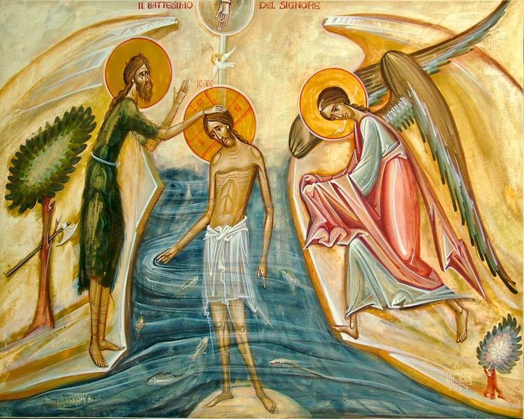 Роздумуємо над різним контингентом людей, які стояли у черзі, щоб охреститися від Івана, а разом з ними Ісус Христос, як грішник — без жодного гріху. Спаситель світу не повинен так поступати, але тому, що він прибув рятувати світ від неволі гріха, применшив себе, прийняв вид грішної особи, Святий ішов дорогою грішників, освячуючи її. Пророк Іван відчував приближення Ісуса до нього, щоб хреститися. Праведна енергетика Господа діяла більше, аніж старання Предтечі. Іван дрижав перед Спасителем, він один з усіх присутніх розумів, хто стоїть перед ним й боявся підняти руку, щоб полити воду на голову Ісусові. Звернувся до Христа: «Це мені потрібно від тебе хреститися, а Ти йдеш до мене?» (Мт. 3, 14). Ісус зупинив мову Івана, не дозволив йому більше сказати, лише велів виконати волю Небесного Батька. Син Божий та пустинник, посник, пророк й Предтеча Іван стояли у воді, обмінялися словами й свято виконали волю Батька небес. Іван тремтячою рукою поливав водою голову Спасителя, а з неба лунав голос: «Це є Син мій улюблений, якого Я вподобав» (Мт. 3, 17).