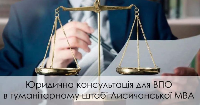 9 січня о 10:00 на базі хабу Лисичанської громади юристом благодійного фонду «Право на захист» буде проведено консультацію для ВПО.