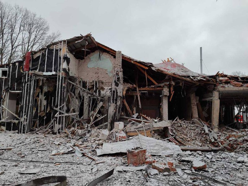 ▪️Унаслідок повторного обстрілу у с. Слобожанське пошкоджено будівлю селищної ради, вікна, дах, паркан, стіни та прилегле сусіднє приміщення. Потерпілих немає.