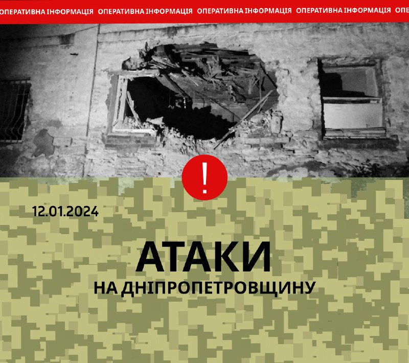 ▪️Ворог вдарив ракетою по Дніпровському району. Без загиблих та постраждалих. ▪️Гучно було й на Синельниківщині 12.01.2024, П’ятниця | 19:02 Автор допису: Голова Дніпропетровської обласної військової адміністрації ▪️Ворог вдарив ракетою по Дніпровському району. Без загиблих та постраждалих. ▪️Гучно було й на Синельниківщині. Там пошкоджене сільськогосподарське підприємство. Люди цілі. ▪️Тричі російські війська вгатили з артилерії по Нікополю. Побите комунальне підприємство. На щастя, там також минулося без жертв. Джерело Друк / PDF