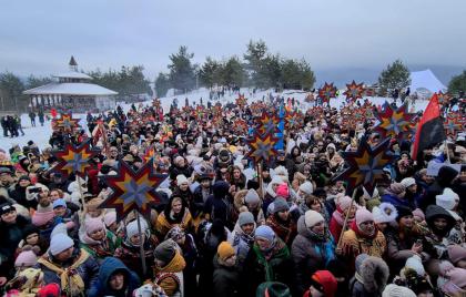 У Карпатах учасники з’їзду «Різдвяні пташки»: вертепи та колядники, збиралися біля дерев’яного бойківського храму села Мшанець гучно та дзвінко колядуючи українські коляди. Звідти колона колядників вирушила ходою до Мшанецьких колиб.