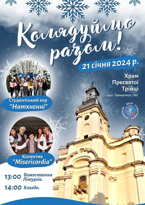 В неділю, 21 січня, студентські капелани та душпастирі храму Пресвятої Трійці (вул. Тершаківців, 11а) отець Ігор Хомічак й отець Віталій Караман запрошують усіх охочих на коляду.