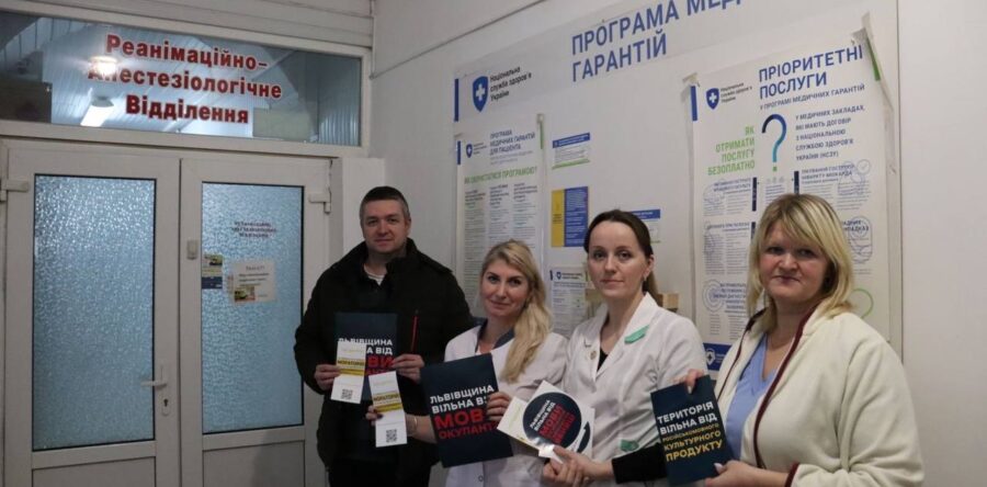 Цього разу працівники робочої групи завітали до закладів освіти Мостиської громади та поспілкувались з працівниками. Медичним працівникам роздавали листівки «Львівщина вільна від мови окупанта», які вони розмістили на закладах охорони здоров’я та провели бесіду щодо заборони використання російськомовного культурного продукту в закладі.