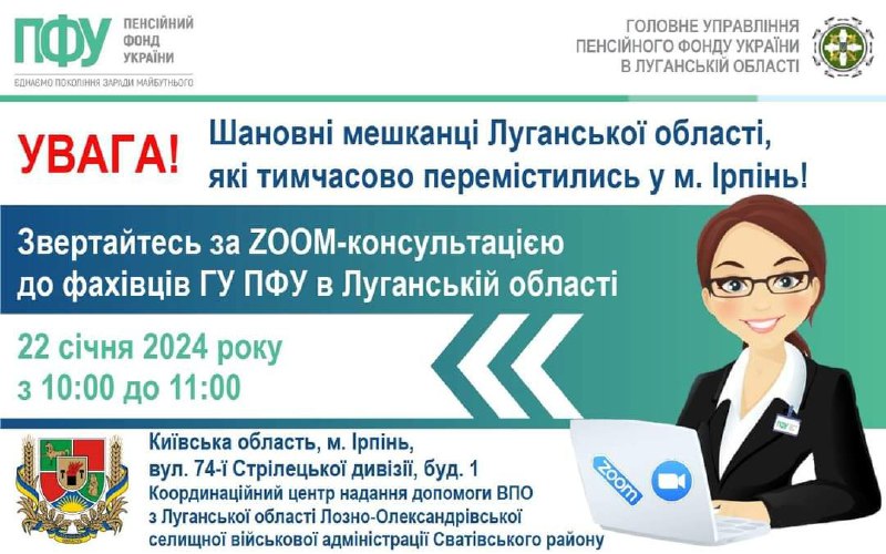 В Ірпені 22 січня пенсійники Луганщини допоможуть із розв’язанням відповідних питань